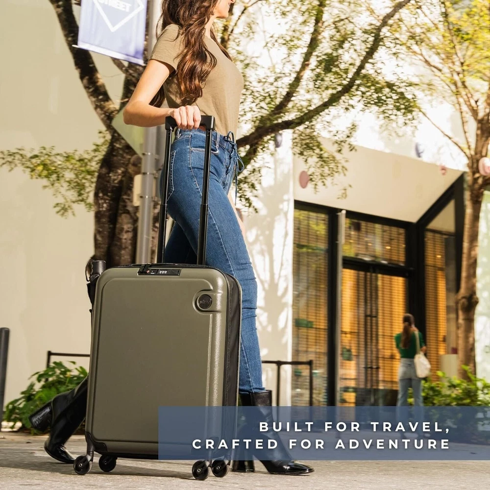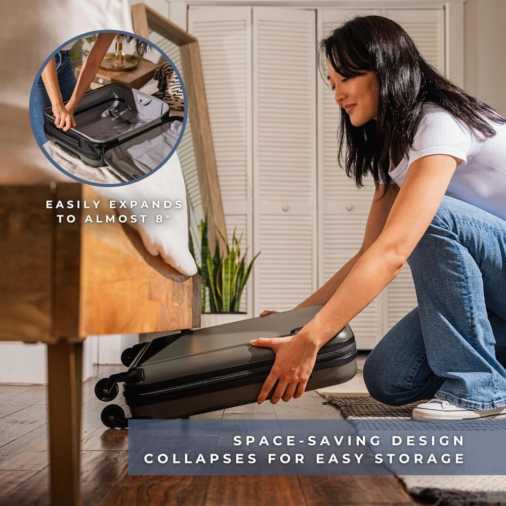 Unfolding your next adventure is more than just a tagline for us. It represents our commitment to providing you with a travel companion that enhances your exploration, inspires your curiosity, and simplifies your travel experience. Enabling effortless travel with innovation and convenience, BÄRA sets a new standard in lightweight TSA approved carry ons. Our mission is to enhance your journey by providing a versatile travel companion equipped with a built-in USB charging port with both USB and USB-C chargers, water bottle holder, 360-degree spinning wheels, and secure locking mechanism. Elevate your travel experience with the BÄRA Travel Set, a comprehensive solution designed to streamline your journey. This all-in-one set includes a Hardshell Collapsible 20 Inch Carry On Luggage, essential Packing Cubes, and a versatile Toiletry Bag, providing you with everything you need for organized and stress-free travel. The Hardshell Collapsible Carry On Luggage offers both durability and convenience, crafted from 100% ABS hardshell material to protect your belongings while featuring a collapsible design for easy storage. Maneuver through airports effortlessly with the 360° Spinner Wheels and height adjustable telescopic handle, ensuring smooth mobility from check-in to boarding. The included Packing Cubes are meticulously designed to maximize suitcase space and keep your belongings neatly organized, while the TSA Approved Toiletry Bag offers convenient storage for your essential toiletries with features like a built-in hook for hanging and multiple mesh pockets. Whether you're embarking on a weekend getaway or a long-haul journey, the BÄRA Travel Set provides the perfect combination of functionality, durability, and style to enhance your travel experience.