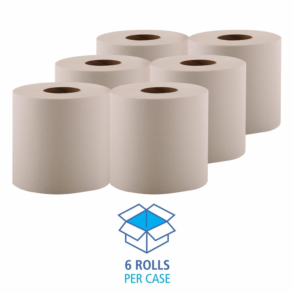 Strong, easy to grab material. Durable and absorbent. Core must be removed before use. Great for hand-washing in public restrooms.
