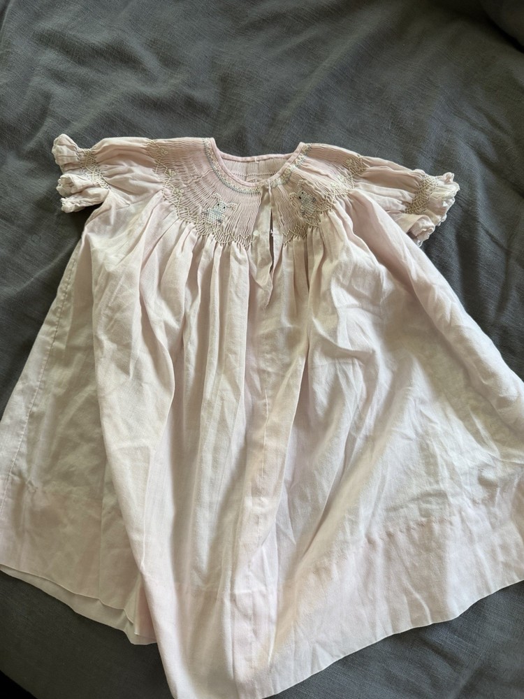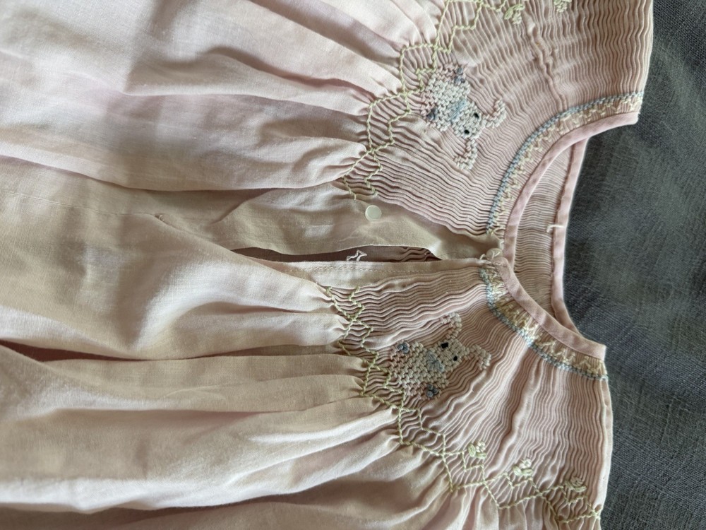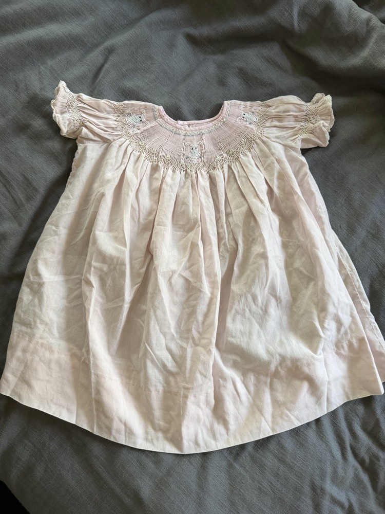 This 24-month-old baby girls smocked bunny dress is perfect for Easter and spring occasions. Made from 100% cotton with embroidered accents, the dress features a round neck, short sleeves, and a button closure. The knee-length A-line dress in pink color and Easter theme is machine washable and ideal for a party or special event. With a cute Easter Bunny character design, this dress is both stylish and comfortable for your little one to wear during the spring season.