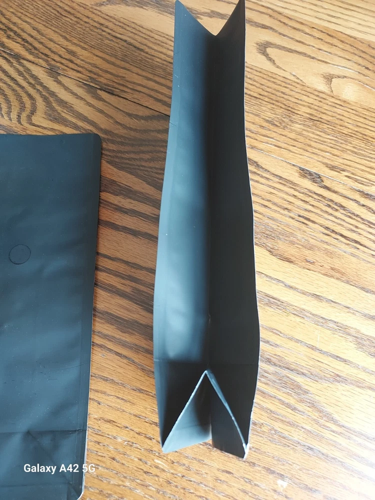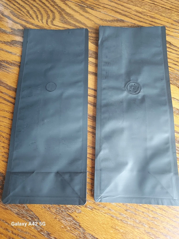 NEW Coffee or candy bags with flow valve (12oz) capacity. (50 in bundle) FREE SHIPPING included Bag size is 10 3/4 tall - 4 1/4 wide - 2 inches deep. Side gusseted with block bottom. Bags are black matte and do feature a one-way flow valve for freshness. Bags require heat seal - not self-sealing.
