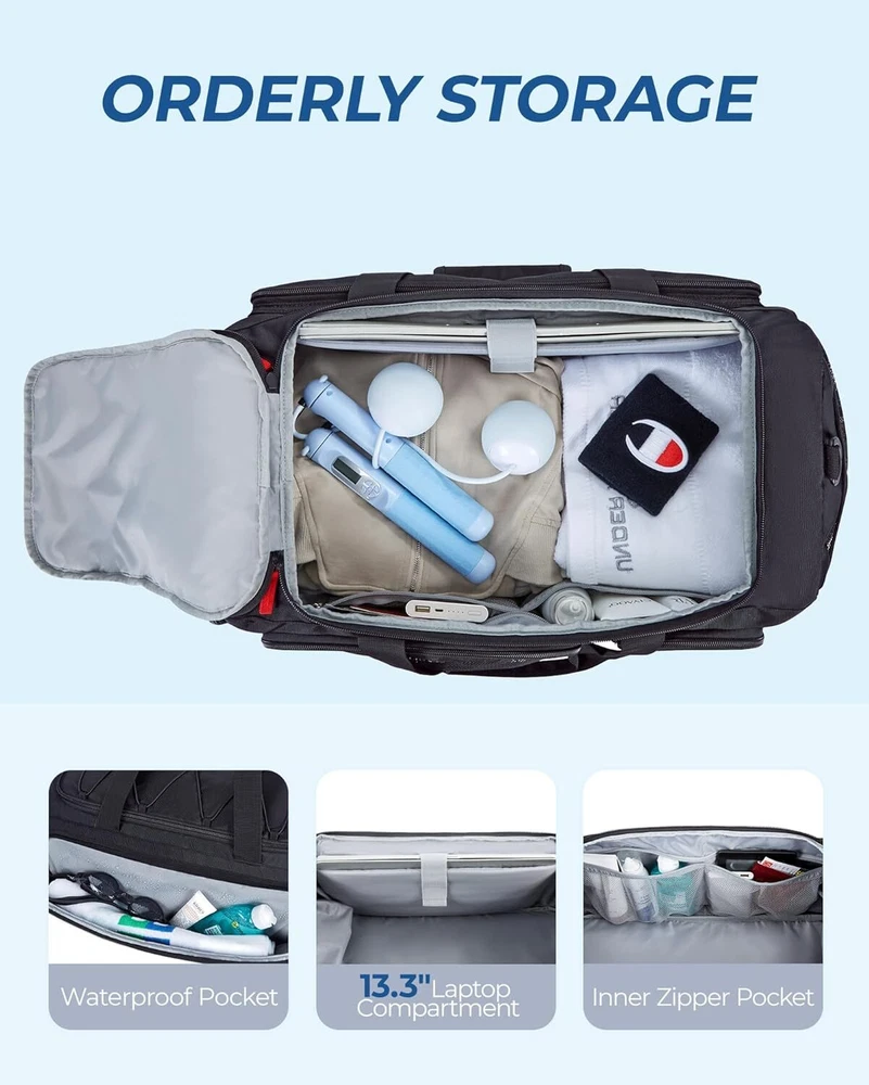 - Spacious & Multi-Compartments: The BAGSMART sports bag is designed to meet all your storage needs. With multiple compartments including a waterproof pocket, a 15.6" laptop compartment, and an inner zipper pocket, this gym bag keeps your belongings neatly arranged and easily accessible. Carry everything you need in one convenient and organized space