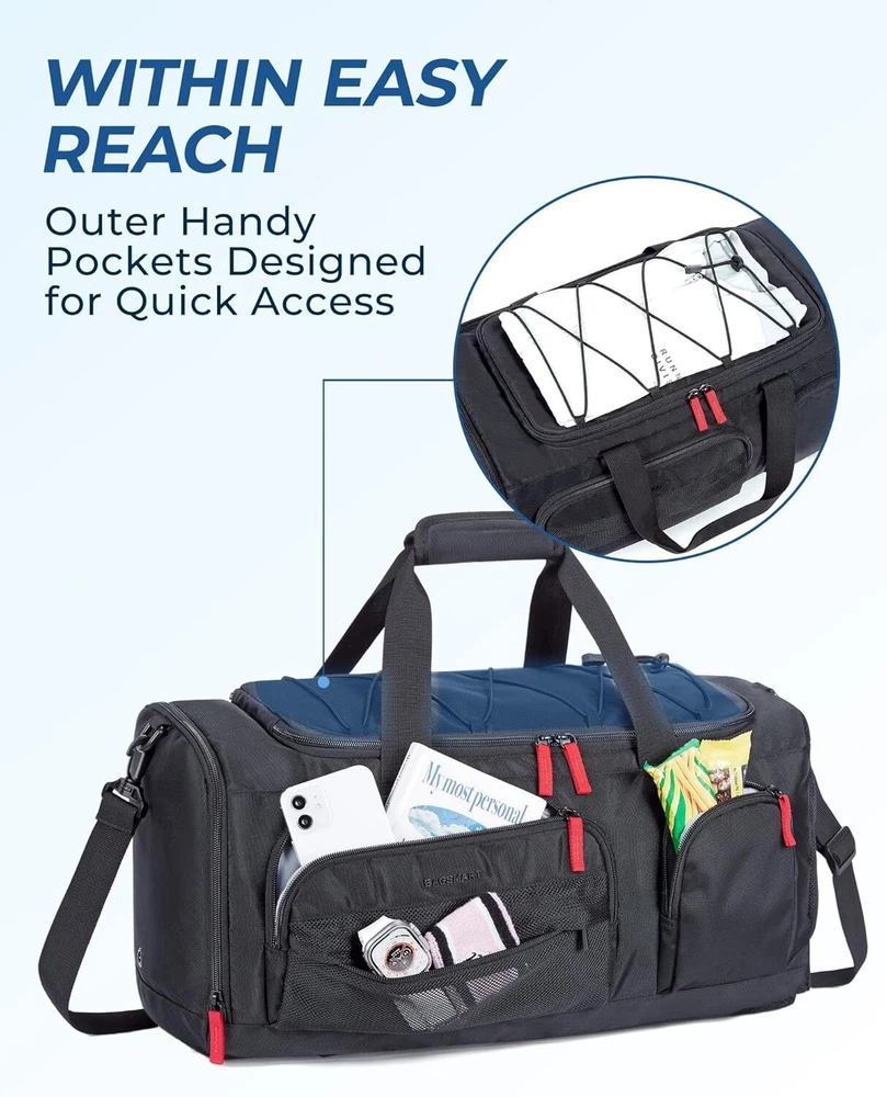 - Easy Access & Convenience: Designed for convenience, our sports bag is equipped with an outer handy pocket for quick access to essentials like keys, phones, or small items. The adjustable lanyard provides a secure attachment point for additional accessories. Whether you're going to the gym, traveling, or passing through airport security, our bag offers easy access and convenience