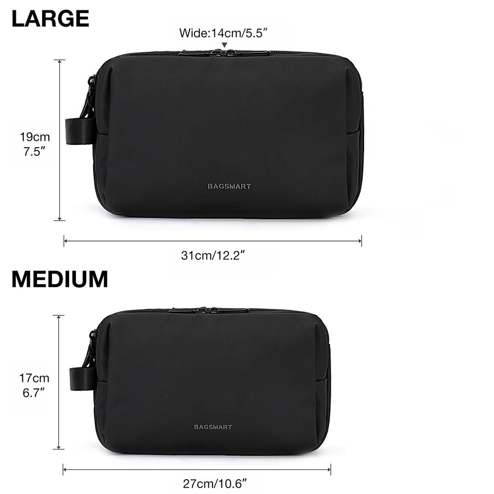 BAGSMART Toiletry Bag for Men, Travel Toiletry Organizer Dopp Kit Water-resista Features: ๐๐๐ซ๐ ๐ ๐๐๐ฉ๐๐๐ข๐ญ๐ฒ: Mens toiletry bag medium size: 10.6''L*3.9''W*6.7''H, large size: 12.2''L*5.5''W*7.5''H. Different sizes meet the needs of various buyers, with the large size capable of holding all the toiletries for a family ๐๐ฎ๐ฅ๐ญ๐ข-๐๐ฎ๐ง๐๐ญ๐ข๐จ๐ง๐๐ฅ ๐๐๐ฌ๐ข๐ ๐ง: Travel toiletry bag made of water-resistant material, easy to wipe clean and protects the shaver from splashed water. Spacious main compartment with elastic straps hold bottles upright. Multiple pockets inside, can hold all your toiletries and shaving supplies organized ๐๐๐ฉ๐๐ซ๐๐ญ๐ ๐๐จ๐ฆ๐ฉ๐๐ซ๐ญ๐ฆ๐๐ง๐ญ: The front waterproof pocket can keep the wet/dry items separated. The back pocket design includes an elastic band and zippered pockets for better organization of various toiletries and makeup items ๐๐จ๐ฎ๐๐ฅ๐ ๐ณ๐ข๐ฉ๐ฉ๐๐ซ ๐๐๐ฌ๐ข๐ ๐ง: The dual zipper design allows for easy opening and access to items, while the hidden snap closure at the back keeps everything secure and prevents zipper snagging ๐๐ฎ๐ฅ๐ญ๐ข๐ฉ๐ฅ๐ ๐๐๐๐๐ฌ๐ข๐จ๐ง๐ฌ: Bagsmart toiletry bag is perfect for both home and travel. Its unique design combines a toiletry bag, shaving kit, and makeup/cosmetic bag into one convenient solution Features: ๐๐๐ซ๐ ๐ ๐๐๐ฉ๐๐๐ข๐ญ๐ฒ: Mens toiletry bag medium size: 10.6''L*3.9''W*6.7''H, large size: 12.2''L*5.5''W*7.5''H. Different sizes meet the needs of various buyers, with the large size capable of holding all the toiletries for a family ๐๐ฎ๐ฅ๐ญ๐ข-๐๐ฎ๐ง๐๐ญ๐ข๐จ๐ง๐๐ฅ ๐๐๐ฌ๐ข๐ ๐ง: Travel toiletry bag made of water-resistant material, easy to wipe clean and protects the shaver from splashed water. Spacious main compartment with elastic straps hold bottles upright. Multiple pockets inside, can hold all your toiletries and shaving supplies organized ๐๐๐ฉ๐๐ซ๐๐ญ๐ ๐๐จ๐ฆ๐ฉ๐๐ซ๐ญ๐ฆ๐๐ง๐ญ: The front waterproof pocket can keep the wet/dry items separated. The back pocket design includes an elastic band and zippered pockets for better organization of various toiletries and makeup items ๐๐จ๐ฎ๐๐ฅ๐ ๐ณ๐ข๐ฉ๐ฉ๐๐ซ ๐๐๐ฌ๐ข๐ ๐ง: The dual zipper design allows for easy opening and access to items, while the hidden snap closure at the back keeps everything secure and prevents zipper snagging ๐๐ฎ๐ฅ๐ญ๐ข๐ฉ๐ฅ๐ ๐๐๐๐๐ฌ๐ข๐จ๐ง๐ฌ: Bagsmart toiletry bag is perfect for both home and travel. Its unique design combines a toiletry bag, shaving kit, and makeup/cosmetic bag into one convenient solution eBay integration by