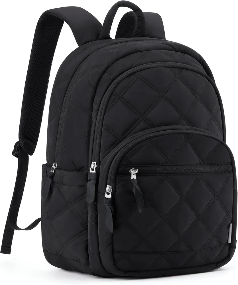 BAGSMAT Travel Laptop Backpack, Cute College Backpack for Women, Black Product Details Ample Storage Capacity: Organize effortlessly with the BAGSMART Laptop women Backpack's spacious compartments. Equipped with 1 large main compartment for books and essentials, a dedicated 15.6" laptop sleeve, two exterior compartments pocket, and a convenient front access pocket for quick-grab items. Dimensions: 17.3×11.8×7.9 inches ensure you have room for everything you need Enhanced Comfort: Enjoy superior comfort on the move with padded, adjustable shoulder straps that distribute weight evenly. The breathable mesh back panel of cute backpack woman provides ergonomic support and keeps you cool during extended wear, ensuring a comfortable carrying experience whether you're loaded with books or traveling light Versatile Travel Companion: Designed for versatility, this travel backpack for women seamlessly integrates into your travel routine. TSA friendly with a back luggage strap for easy attachment to suitcase handles, it's ideal for trips, hikes, and daily commutes. A reliable choice for college, travelers, and adventurers alike Style Meets Practicality: Combining practicality with contemporary style, our small backpack for women allows you to showcase your personal flair without compromising on functionality. Perfect for daily use, work, or leisure, it's a must-have accessory that blends seamlessly into any lifestyle