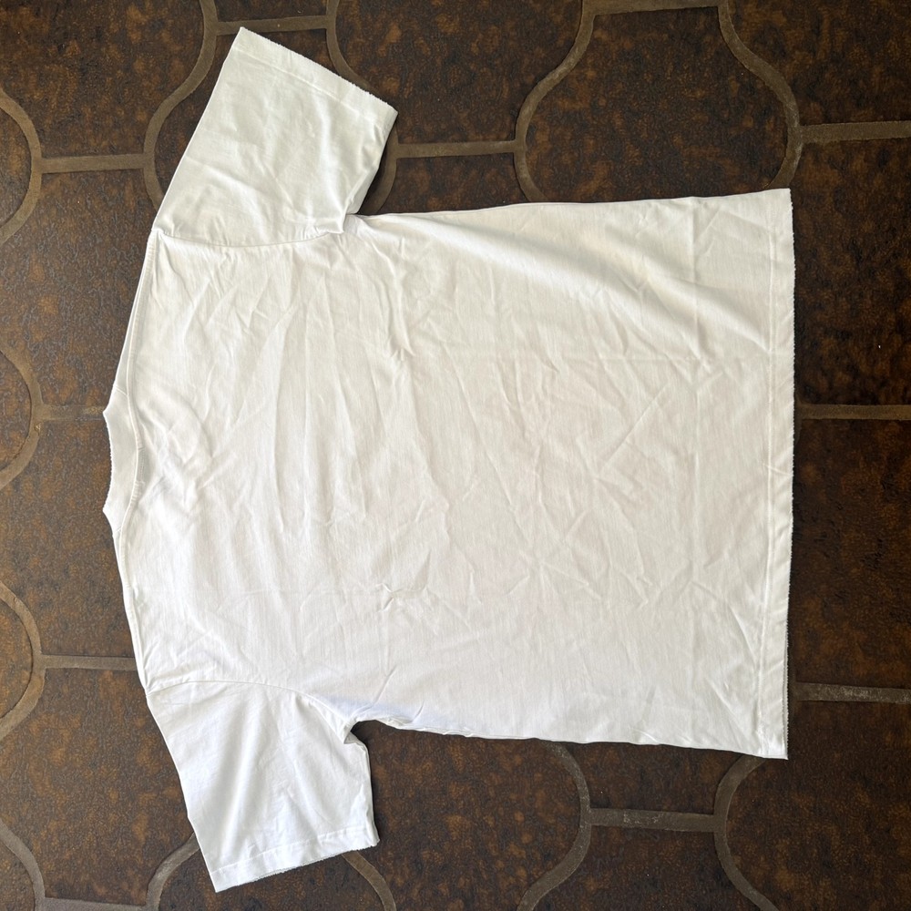 This shirt has only ever been worn once it's in great condition with no stains and still has its clean distressed style along each opening on the shirt. This will be carefully packaged and shipped the same day, The BALENCIAGA Reverse Logo Print White Men's T-Shirt in size LARGE features a solid white color with a crew neckline and short sleeves, made from lightweight cotton fabric. This relaxed fit t-shirt is adorned with the iconic Balenciaga logo as accents, perfect for a summer wardrobe. With its designer theme and oversized design, this t-shirt embodies a sense of adventure and style, making it a statement piece for any fashion-forward man.