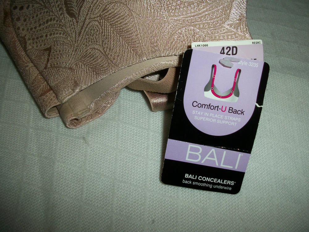 PLEASE, SERIOUS BUYERS, ONLY ! [#422] This is a beautiful underwire bra in beige / nude color, NEW with tags in size 42D style #3235 made by BALI. Smoothing full coverage underwire bra with concealing petals. The straps are adjustable for comfort and better support. The cups are seamless and padded. There are 3 rows with 3 hooks and eyes closure in the back for better comfortable fit. This is a very flattering and comfortable bra. Size : 42D. Color : Beige / Nude. Sometimes, colors seem lighter / darker in pictures than the actual colors of the item due to camera flash and different computer monitors please, take that into consideration. Material : 73% Nylon and 27% Spandex. Condition : NEW with tags. No flaws detected. My aim is to offer you exquisite high quality merchandise with the best price possible. I do inspect each piece individually and I am very particular of my chosen items and possibly over critical when I list any flaws that there might be. ** All bras are purchased bulk from major retail department stores. They are new, some are discontinued, some have missing, marked, bent or ripped tags, try on's, ripped bags or just overstock. All bras are New unless otherwise stated. Inside tags are marked to prevent store returns. ** Smoke Free and Pet Free. All items are "sold as is" NO returns. You, can buy with confidence. Please, check my other listings. Shipping : I ship to USA and eBay Global, soon as I receive payment. Once, I have delivery confirmation I am no longer responsible. I am happy to combine shipping. Payment : Confirmed Pay Pal accounts. Must be paid within 48 hours after auction has ended. ************************************************************************************************************ All items are "sold as is" NO returns. I will refund the item only if there is an error in the description. Item must be returned within 14 days after received. Item should be in original unused/unworn condition with all tags attached. 10% re-stocking / returned fee will be deducted from sold price. Buyer is responsible for all shipping and handling charges. NO exceptions. ************************************************************************************************************ If a refund is necessary, please, e-mail me prior to shipping item back or leaving feedback. The original cost of shipping and handling and the cost of the returned shipping charges are NOT REFUNDABLE under ANY circumstances . Feedback will be posted after your feedback.