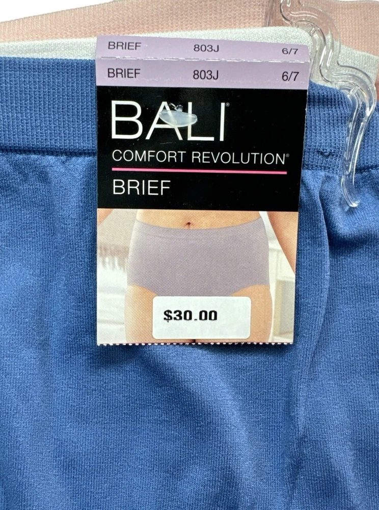 BALI Womens 3-Pack Comfort Revolution Brief Underwear Denim Blue White Beige Sz 6/7 NEW With Tags!!! Please See All Pictures. WOMEN’S Size Available: 6/7 Color : Denim Blue, White, Beige STYLE: #803J RETAIL PRICE: $30.00+ Tax Description:100% Nylon Machine Wash able Imported