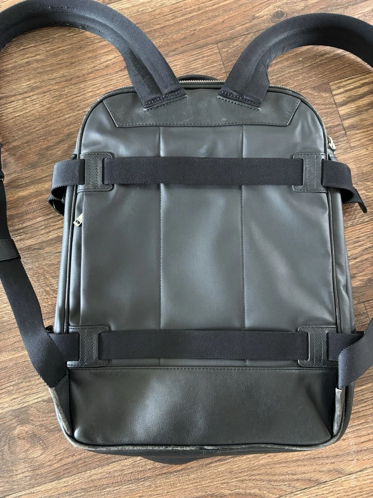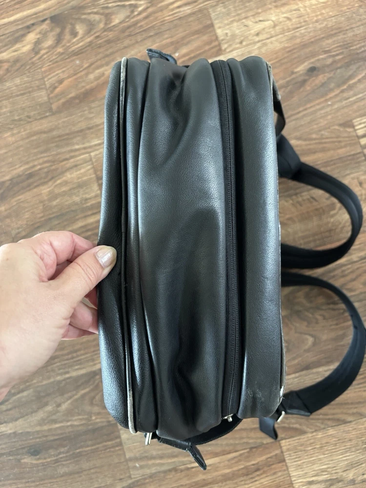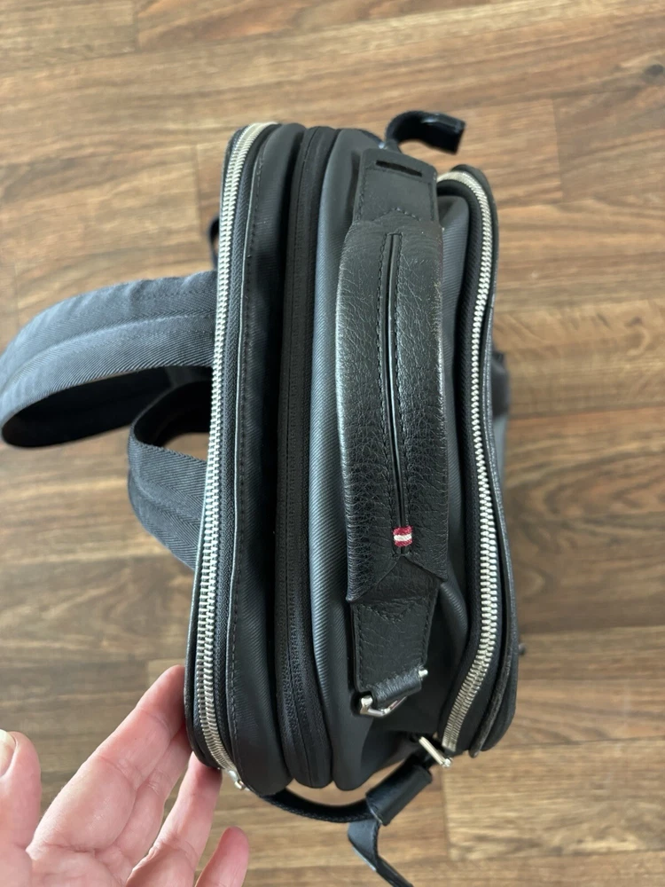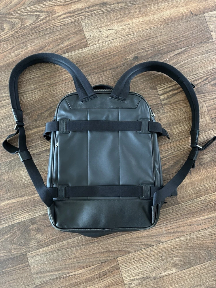 Product Details Part of Bally's Vogel business travel collection, this Veltan backpack is crafted from scratch and water-resistant coated cotton canvas and leather. It features adjustable shoulder straps, multiple internal zipped compartments for your office essentials, a rear zipped pocket for easy access to travel essentials, side straps and a D-ring for additional accessories, as well as a laptop pocket. SKU: 6227992-BLACK Black Fabric Made in: Italy Dimensions: 30cm x 42cm x 16cm Pre owned condition, minimal signs of wear Super clean interior
