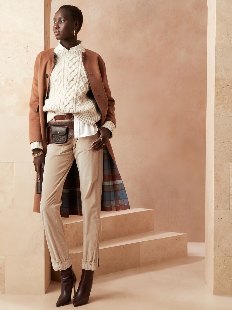 BANANA REPUBLIC Petite Slim Corduroy Pant in Brown (first photo)...new with tag SLIM FIT: Mid rise. Slim through hip and thigh, gentle taper from knee to hem. Zip fly with hook and eye closure. Front and back pockets. Zip detail at the hem. Elastic cuff. Unlined. #773881 Mid rise (10"). Slim through the hip and thigh, tapered leg. Ankle length. Inseams: Petite/Short 25" 78% cotton, 20% modal. Machine wash. Imported. ***Inner tag marked***