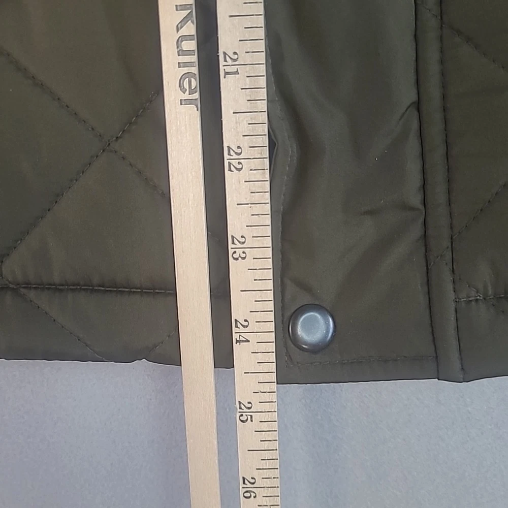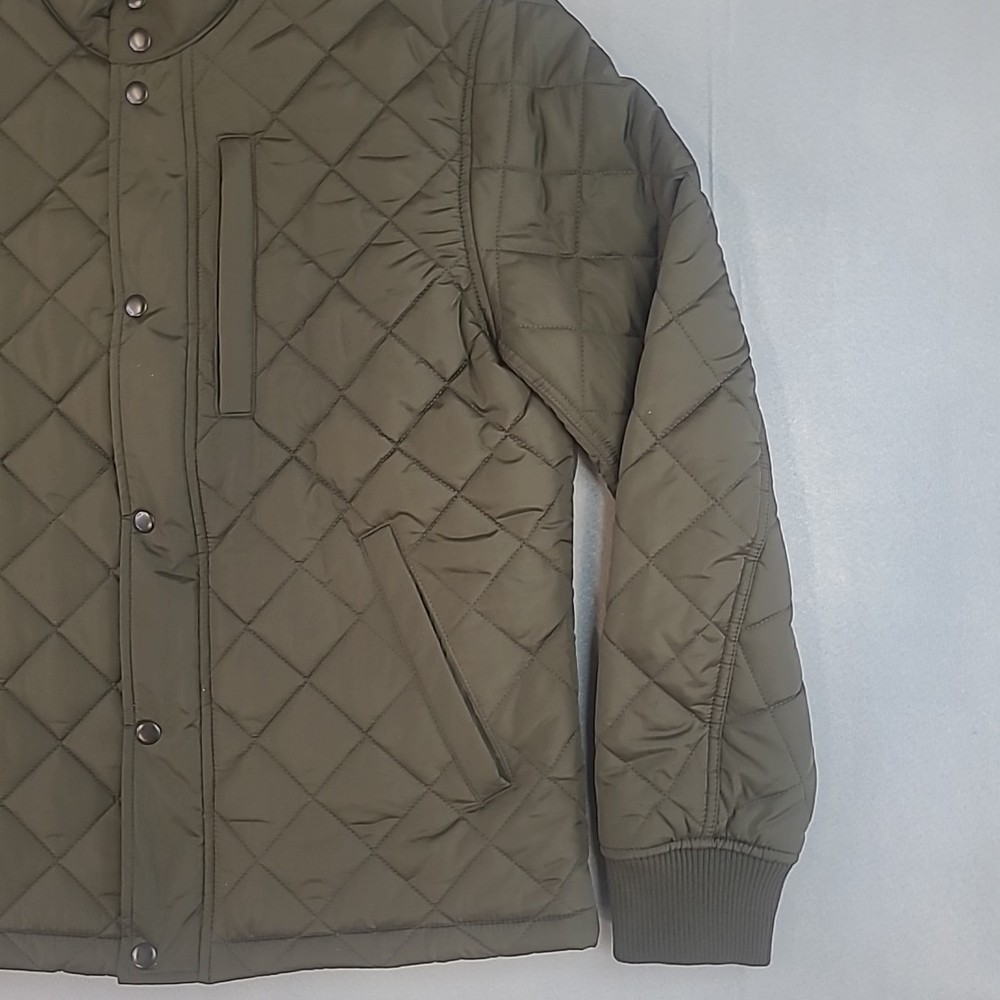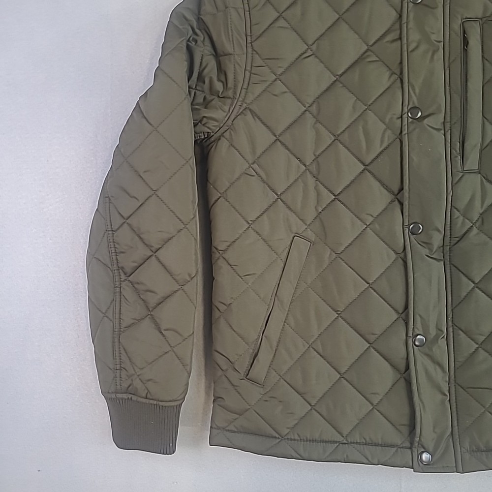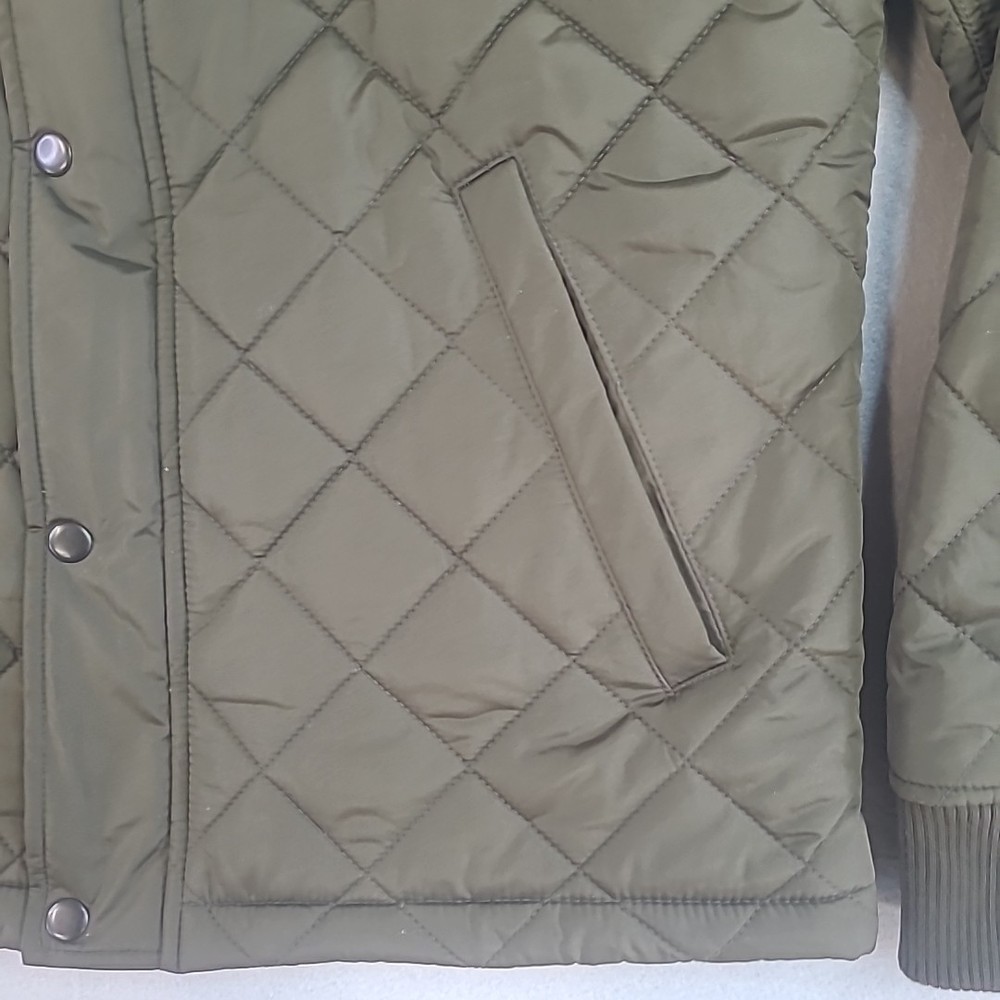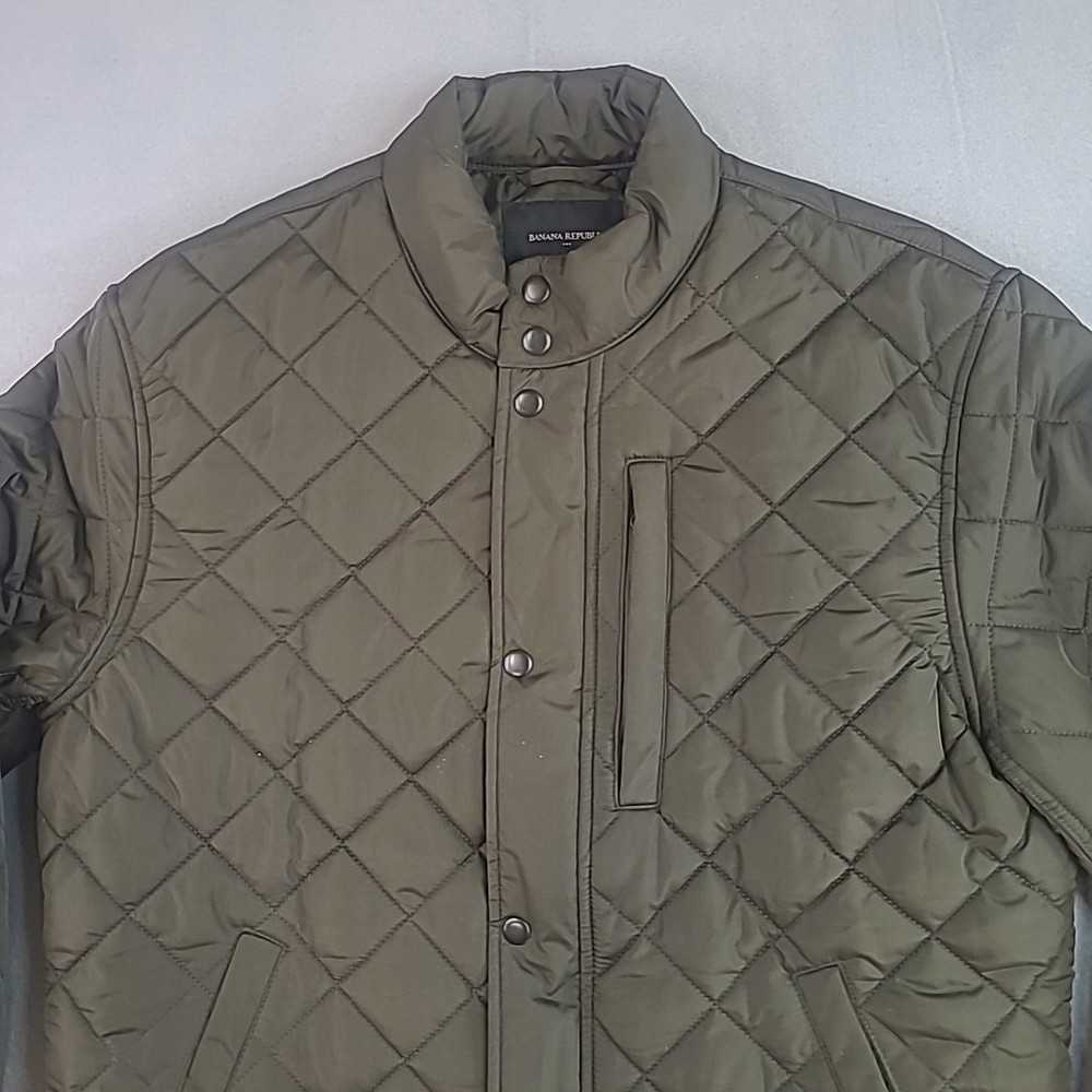 BANANA REPUBLIC Men's Diamond Quilted Puffer Jacket - Size M - Army Green Stay stylish and warm with this Banana Republic bomber-style puffer jacket. Designed with a diamond quilted pattern and filled for lightweight insulation, this versatile piece is perfect for layering through the fall and winter seasons. Features: Size: Men's Medium (M) Color: Army Green / Olive Style: Bomber Jacket Quilted diamond stitching for a classic, rugged look Front zip closure with snap-button placket Ribbed cuffs, collar, and hem for a snug fit Two front hand pockets & one interior pocket Lightweight and comfortable—perfect for everyday wear Material: Shell and lining – 100% polyester Brand: Banana Republic Condition: Pre-owned and in excellent condition with minimal signs of wear. No rips, stains, or holes. Clean and ready to wear. Measurements (approximate, laid flat): Chest (pit to pit): [Insert measurement] Length (collar to hem): [Insert measurement] Sleeve length (shoulder to cuff): [Insert measurement] 👕 Clean, smoke-free home 📦 Ships fast with tracking ✅ Trusted seller – buy with confidence!