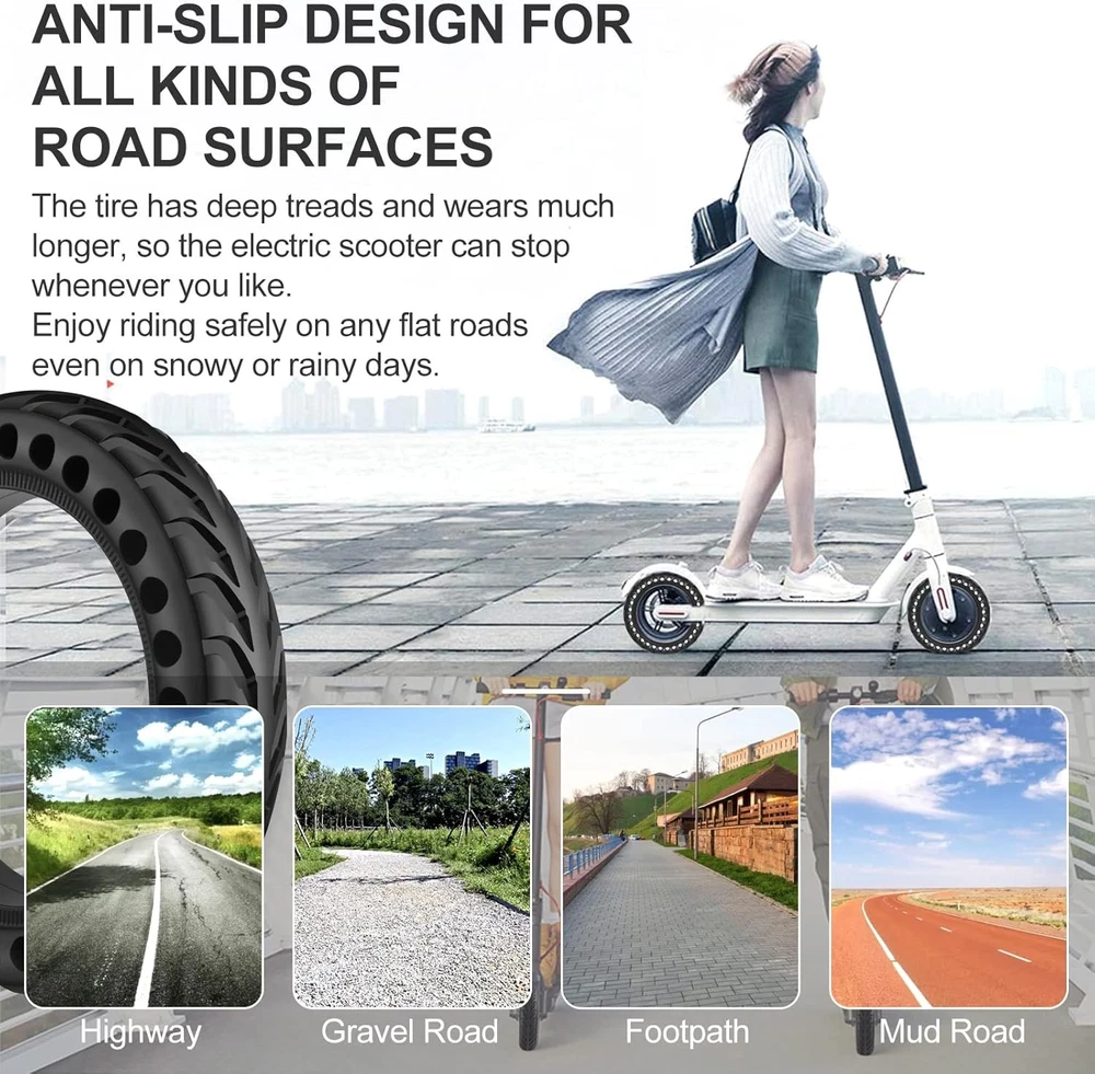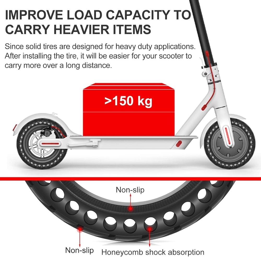 BANGTING 50/75-6.1 Tubeless Solid Tires for Electric 8.5x2, Black 1PCS Product Details Brand: BANGTING Seasons: Year Round Size: 8.5x2 Section Width: 2 Inches Load Capacity: 330.7 Pounds Tread Type: Non-Directional Rim Width: 8.5 Inches Tire Diameter: 9 inches Item Weight: 1.02 Kilograms Vehicle Tire ISO Metric Size Description: 8.5R Construction Type: Radial Manufacturer: BANGTING Model: 8.5x2 inch Tire Item Weight: 2.25 pounds Item model number: B20201101-1 Manufacturer Part Number: B20201101-1 Brand: BANGTING Seasons: Year Round Size: 8.5x2 Section Width: 2 Inches Load Capacity: 330.7 Pounds Tread Type: Non-Directional Rim Width: 8.5 Inches Tire Diameter: 9 inches Item Weight: 1.02 Kilograms Vehicle Tire ISO Metric Size Description: 8.5R Rim SizeLoad Index: 8.5 Inches91 Speed RatingTread Depth: A80.34 Inches 【Compatible】- Specially designed for tires of electric scooters with 8.5 x 2, 50/75-6.1, 8 1/2 x2, including Gotrax GXL V2 / XR / APEX, Xiaomi Pro 2 / M365 / M365 Pro / 1S / 3 / 3 Lite / Essential and others. Please check the pictures to confirm your original tire size and compatibility before ordering. If your scooter's original tire size is 8.5 x 2, 50/75-6.1, 8 1/2 x2, please feel free to use our tires. 【High Quality Material】- These BANGTING electric scooter tires are made of high quality rubber material, providing excellent anti-shock performance and buffer pressure through special hollow design. The ridged surface provides excellent grip and is abrasion resistant, burst and pressure resistant, lightweight and durable. 【Best Alternative】- Say goodbye to flat tires with our solid rubber tires, which offer you a safer and more comfortable riding experience compared to traditional pneumatic tires. 【Strong and Durable】- Made of high quality natural rubber from southern Thailand, our tires are twice as hard as ordinary tires. Heat resistant, scratch resistant and durable, ensuring a stable and comfortable ride. 【Worry-Free Tires】- No inflation, no patches, no tubes and no bike pump required, for convenient and maintenance-free riding.