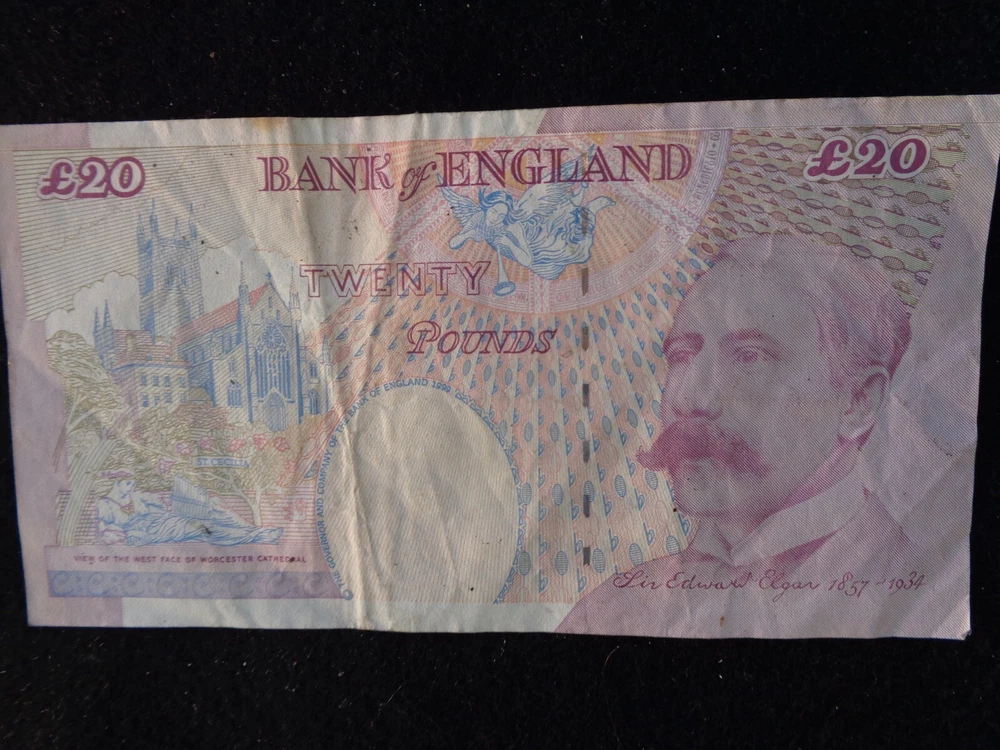 This Bank of England twenty pounds note from 1999 is a circulated banknote. It features the portrait of Queen Elizabeth II on the front and a depiction of St. George slaying the dragon on the back. This note is uncertified and ungraded, making it a great addition to any collection. The note is a product of the United Kingdom and was manufactured there as well. It is a great piece of British history and a must-have for any coin and paper money collector.