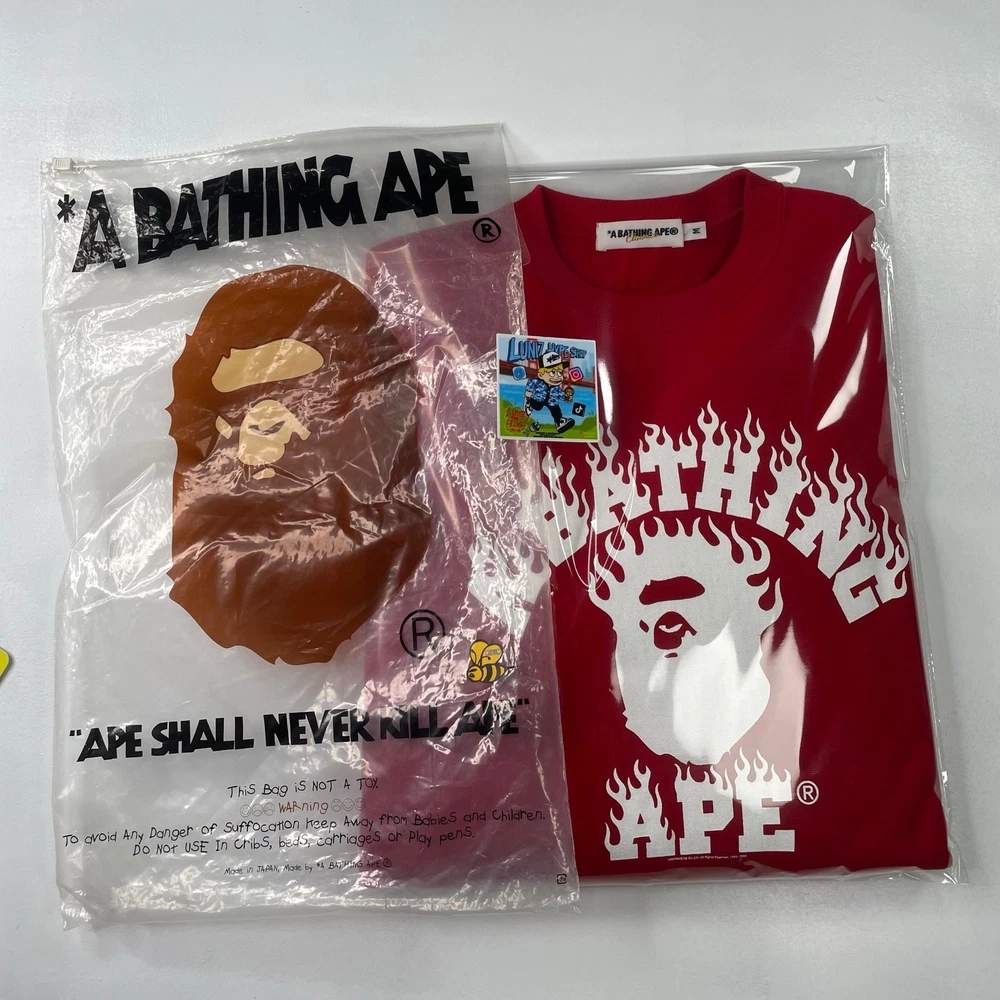 Classic BAPE Flame Crewneck from the Fall/Winter 2009 collection. Men's Size: Medium ( Fits M-L ) Condition: Like new (9.5/10) with OG bag! Measurements: In Inches* Size: M-L (Chest: 46", Length: 26", Shoulders: 18.5", Sleeve: 24.5", Hem: 19"). Please refer to the measurements for exact sizing. Shipping Info: Shipped From: California Shipping Time: Usually ships within 1 day Important Notes: FINAL SALE — No returns. Once shipped, the buyer assumes responsibility for lost/stolen/damaged packages. Please contact the carrier directly if any issues arise. Stored in a clean, smoke-free space. Trusted seller.
