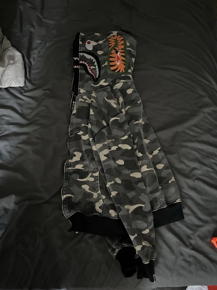 BAPE City Camo Shark Wide Full ZipDouble Hoodi Size L. Condition is Pre-owned. Shipped with USPS Priority Mail.