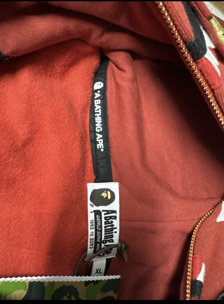 Pattern: Camouflage Character: None Size Type: Regular Style: Full Zip Size: XL Color: Red Fabric Type: Fleece Closure: Zip Vintage: No Brand: Camo Product Line: Bape Accents: Zipper, Logo, Embroidered Type: Hoodie Department: Men Performance/Activity: Streetwear Country/Region of Manufacture: Japan Features: Full Zip, Hooded, Pockets Theme: Colorful, Designer Material: Cotton