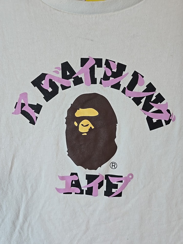 This A Bathing Ape T-Shirt is a must-have for any casual occasion. With its unique animal print pattern, round neckline, and short sleeves, it's perfect for teens and adults alike. Made from comfortable and breathable cotton material, this T-Shirt is machine washable for easy care. The white color and regular fit make it a versatile addition to any wardrobe, while the colorful and classic design adds a touch of fun to any outfit. Whether you're heading to college or just running errands, this T-Shirt is sure to become a favorite. Don't miss out on the chance to own this hard-to-find item from Japan.
