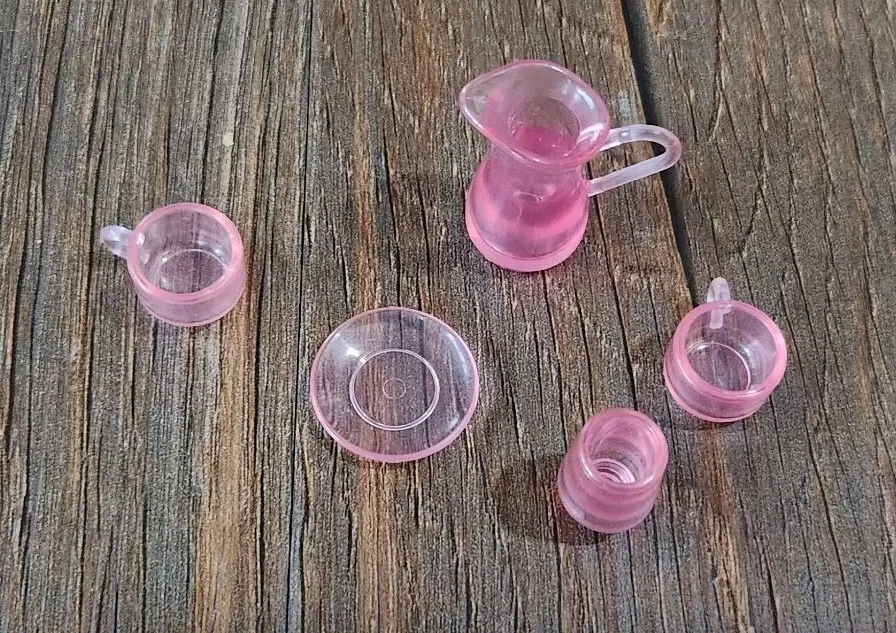 BARBIE 6 O'clock News Play Set Sided Table W/ Drink Set Pitcher Glasses