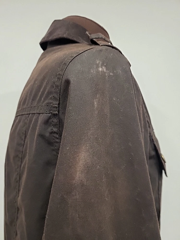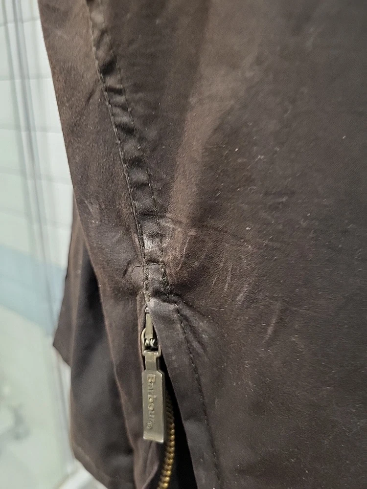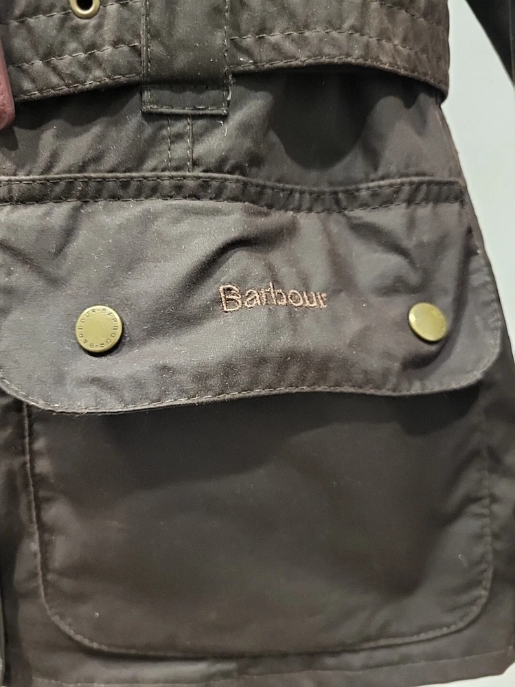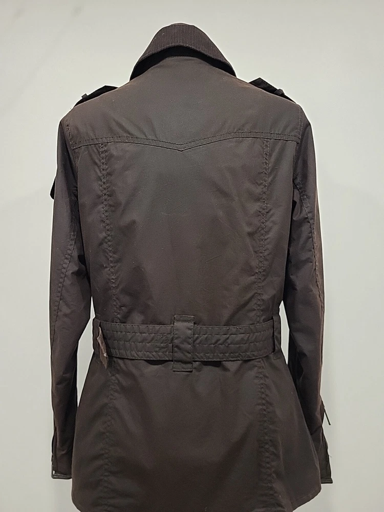BARBOUR FLYWEIGHT HQ Wax Jacket Women UK 12 Brown Country Clothing Coat Waxed layer Few marks as shown but overall in very good conditon still Belted, with leather detailing on cuffs and pockets etc Any questions please ask