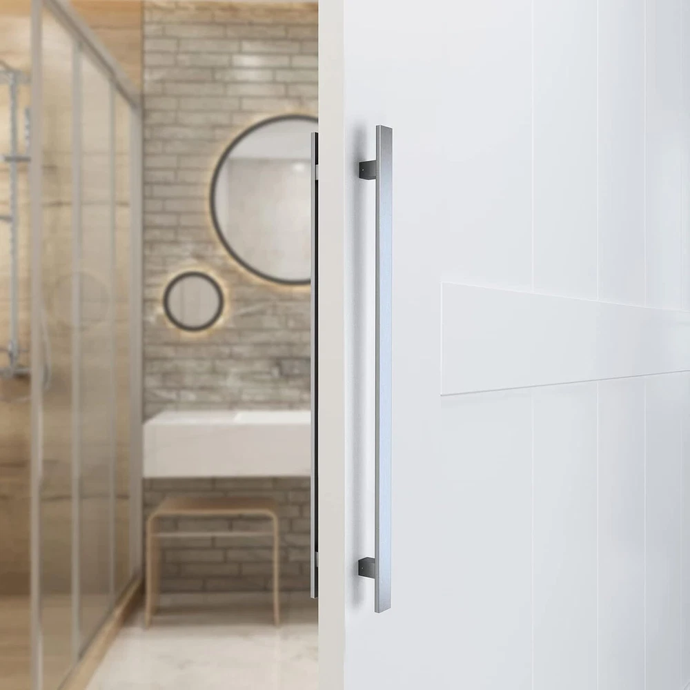 High Quality: Made of grade-304 stainless steel with 1.2mm wall thickness,brushed stainless steel finish ,anti-rust and anti-corrosion,ensures year of use. Pull Handle Size: 36 L ; 1 3/5 " W . The distance of two holes is 29 59/64"; .Fits for wood door panel thickness from 1-3/4" to 2 3/4'',fits for glass door panel thickness from 8/25'' to 12/25'' (If you want to use for a thicker door panel, you could buy some longer screws to match your door.) Widely Application:This double-side design handle can be used for wooden or glass door pulls, commercial doors,office door,barn doors,interior/exterior,entrance/entry door pull handles to coordinate all modern decorations. Package Includes:2 x pull handles;6xscrews;1xAllan key.All other necessary hardware is included as you see in the pictures.(The two handles cannot be installed separately) Perfect After-sales Service: We have a professional customer service team 24 hours online to serve you,if there is any problem about our products,please let us know ,we will try our best to solve your problem. Batteries Required? No Batteries Included? No Special Features Easy to Install Number Of Pieces 2 Finish Brushed Size 36 Inch Country of Origin China Manufacturer BARNSMITH Number of Items 1 Unit Count 1.0 Count Package Type FFP Handle Material Glass, Stainless Steel, Wood Metal Type Stainless Steel Item Weight 4.54 Pounds Theme Industrial Lock Type Key Lock Included Components Screw, Latch, Allen Key Special Feature Easy to Install Specific Uses For Product Door Exterior Finish Stainless Steel Product Dimensions 36"L x 1.6"W Color Stainless Material Stainless Steel Brand BARNSMITH 6020789