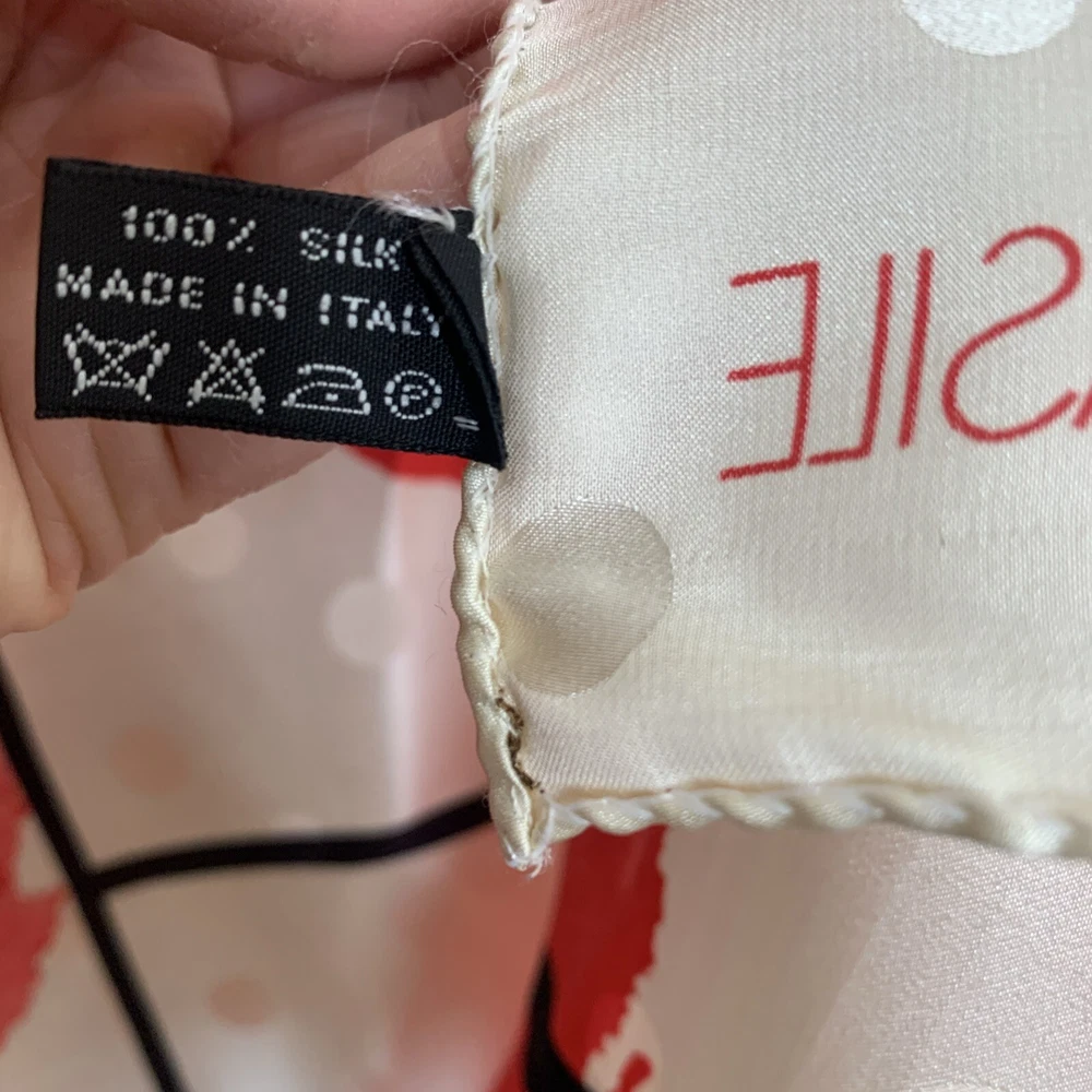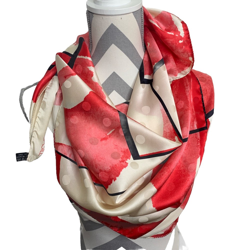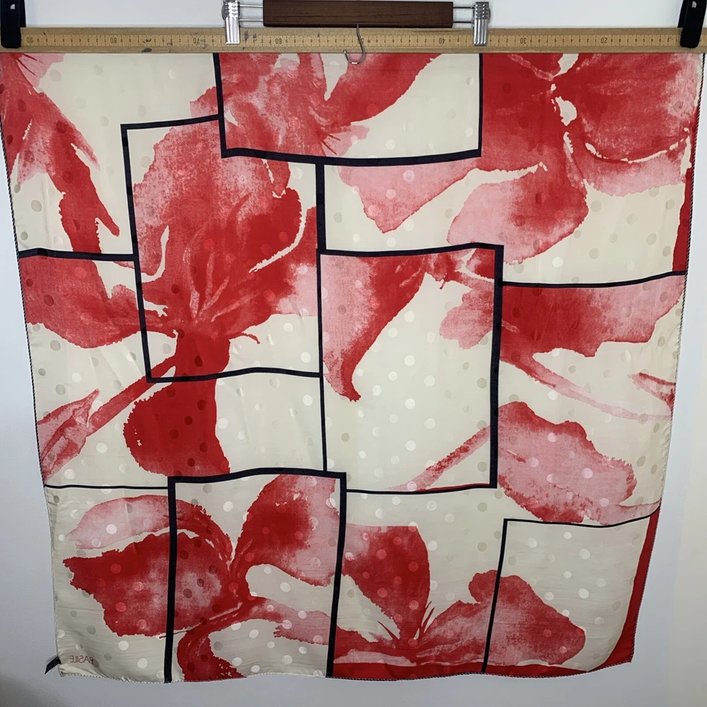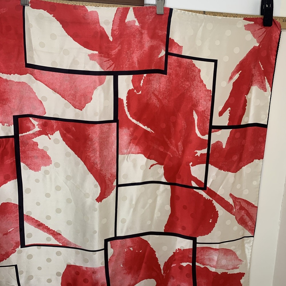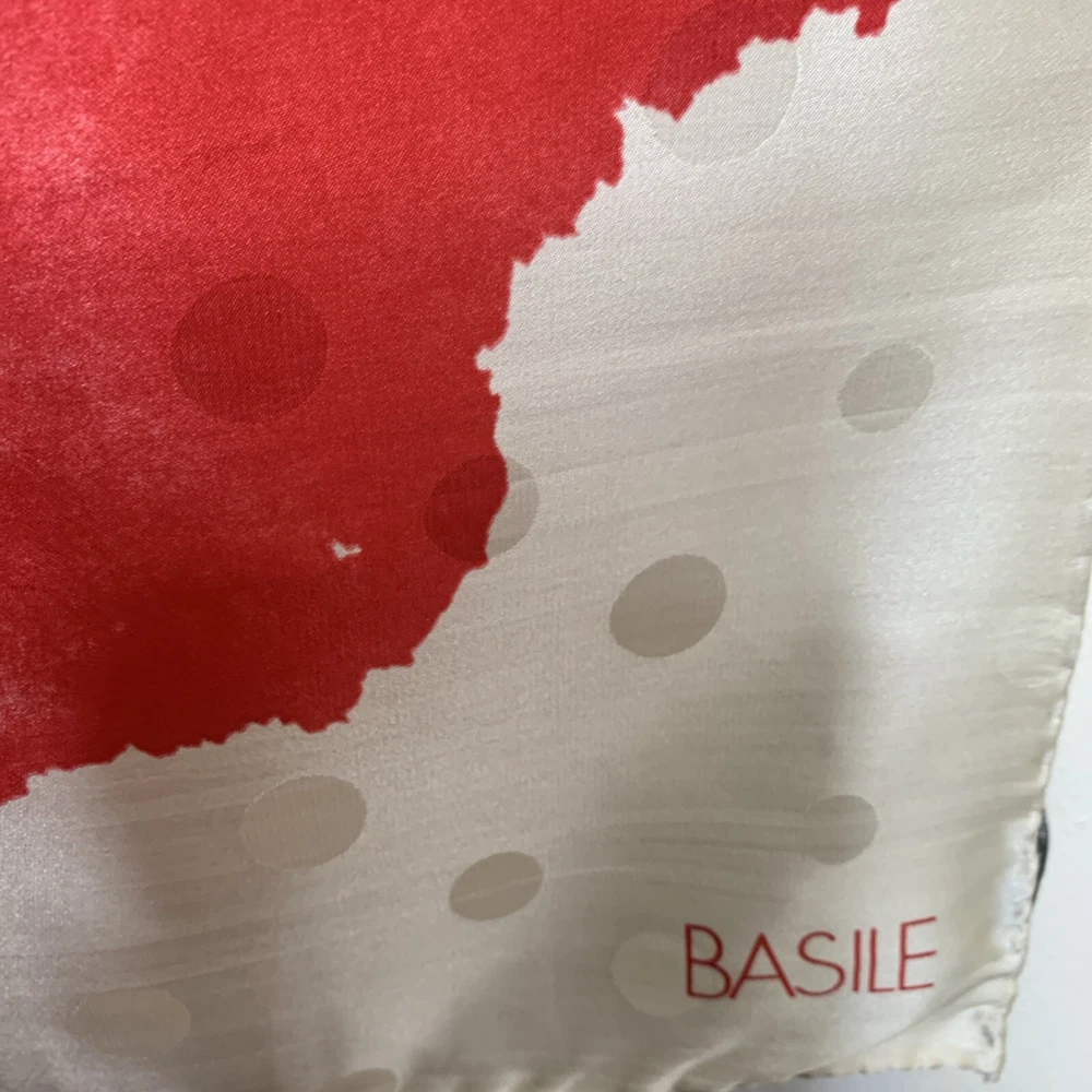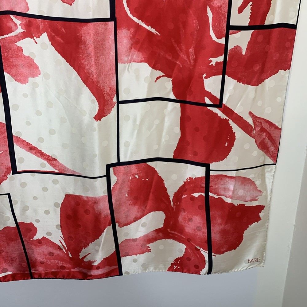 BASILE 34” SQUARE SCARF MADE IN ITALY 100% SILK BOLD RED BLACK IVORY FLORAL PRINT GORGEOUS PREOWNED AND IN EXCELLENT CONDITION PLEASE SEE PHOTOS