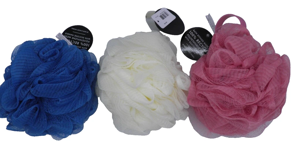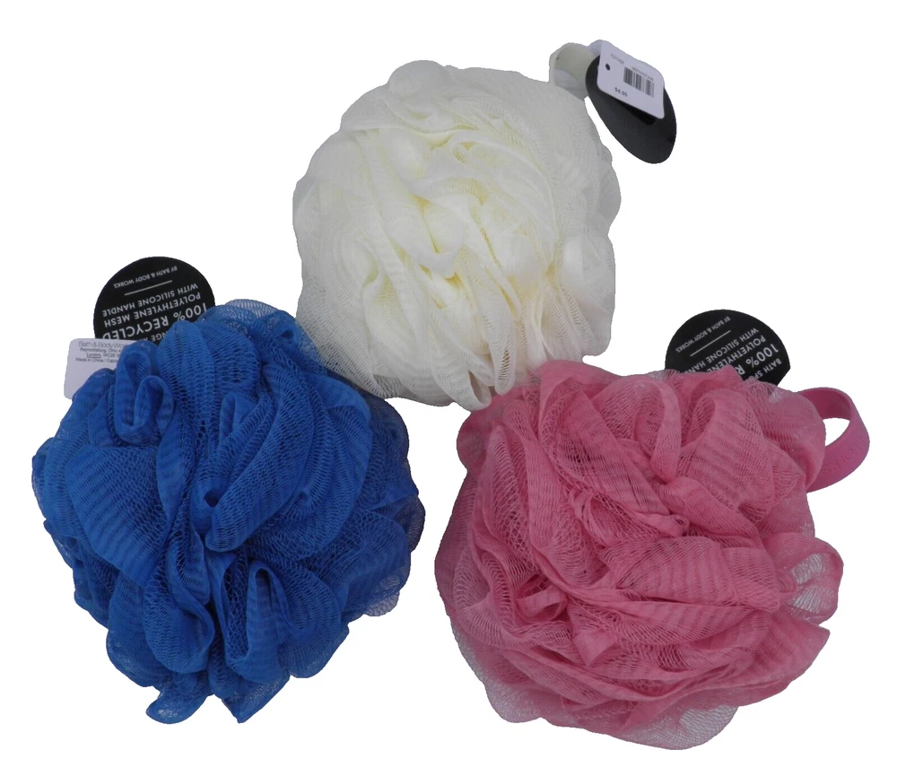 3X BATH & BODY WORKS SHOWER SPONGE LOOFAH POUF Cream Dusty Rose Blue 100% recycled NEW SHIPPING & HANDLING International shipping is not available. Mailing Address - We will ONLY ship to the address on file with eBay. Before making a purchase, please ensure that your address is correct. We may otherwise cancel the sale. Handling Time - Our handling time is set to THREE BUSINESS DAYS. We ship packages Monday - Friday, with the exception of holidays. Calculated Shipping - Our shipping fees are calculated based on weight and dimensions. We ship USPS and UPS depending on cost. This listing is NOT sponsored by, affiliated with or representative of the mentioned brand(s), trade name(s), trademark(s) and does not claim any ownership of such. All trademarks or brands mentioned in this listing are registered trademarks of their original owners who reserve all their rights and ownership. The use or mention of any trade-name, product name, or trademark is necessary and for identification and is for reference purposes only.