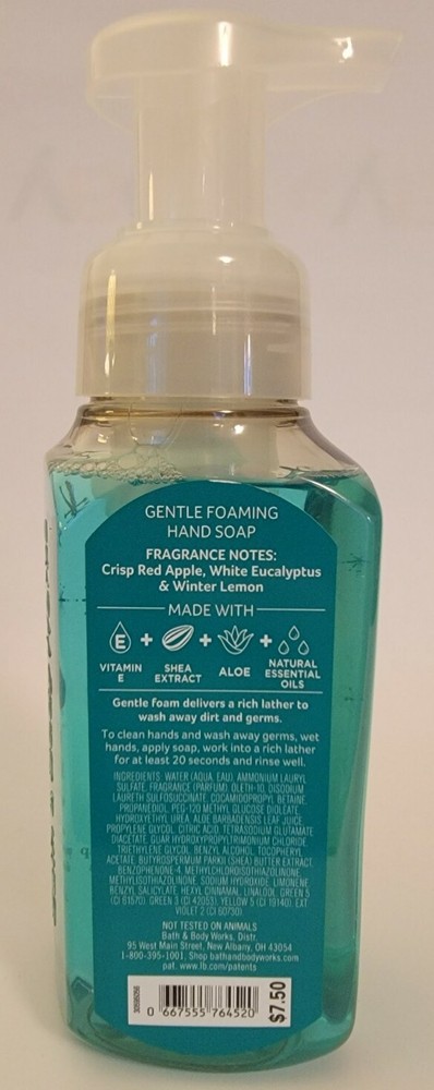 UPC:667555764520Type:Single Hand WashBrand:Bath & Body Worksgtin13:667555764520Size:RegularScent:FRESH MINT APPLEFormulation:Gentle FoamingVolume:8.75 FL OZColor:Blue