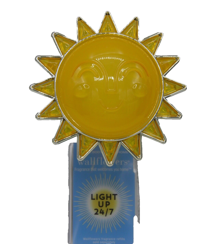 Bath & Body Works SUN Nightlight Wallflower Plug To get started, twist right (clockwise) to uncap the refill and twist left (counter-clockwise) to attach it to the plug. Always keep your plug and fragrance refill upright. (Bonus: our rotating plug lets you use a vertical or horizontal outlet!) Because Wallflowers refills contain fragrance oils that may damage finished surfaces and some plastics, always keep a 12" clearance above your plug to prevent damage to surrounding surfaces. This listing is NOT sponsored by, affiliated with, or representative of the mentioned brand(s), trade name(s), or trademark(s) and does not claim any ownership of such. All trademarks or brands mentioned in this listing are registered trademarks of their original owners who reserve all their rights and ownership. The use or mention of any trade name, product name, or trademark is necessary and for identification and is for reference purposes only. Mailing Address - We will ONLY ship to the address on file with eBay. Before making a purchase, please ensure that your address is correct. We may otherwise cancel the sale. Handling Time - Our handling time is set to THREE BUSINESS DAYS. We ship packages Monday - Friday, except on holidays.