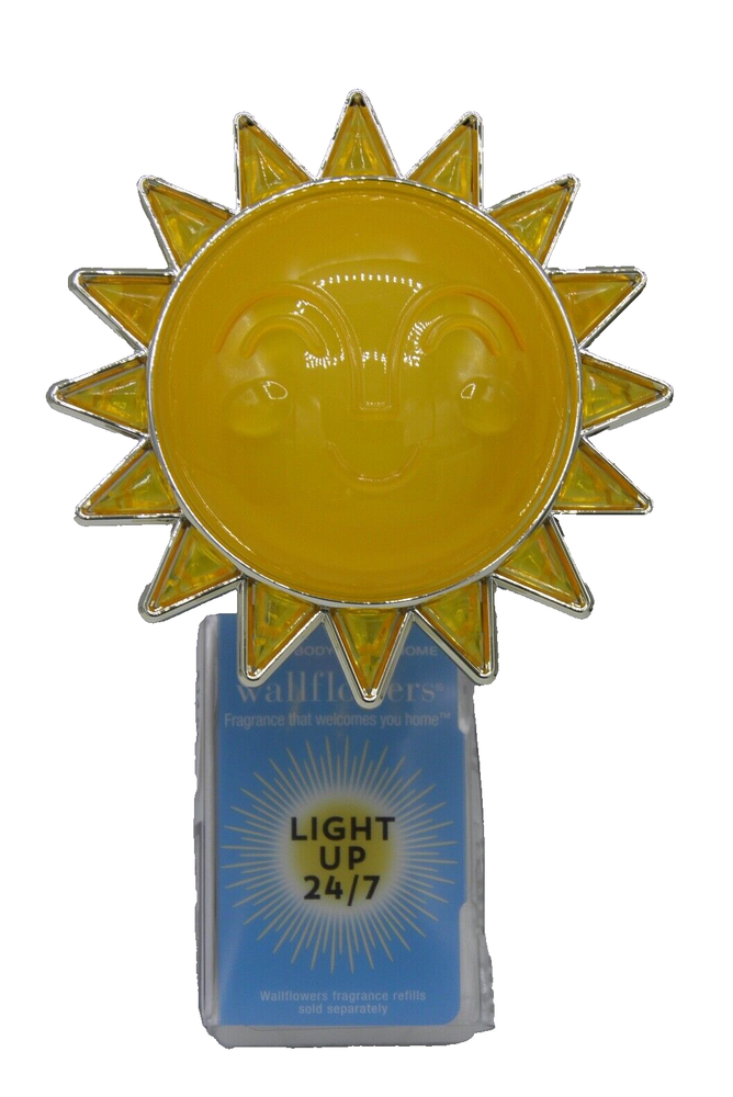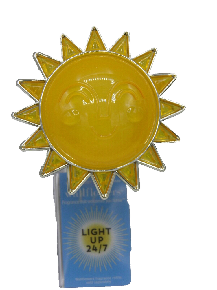 Intended Use: wallflower plug gtin13: Does not apply Features: Diffuser UPC: Does not apply Material: Plastic Number in Pack: 1 Brand: Bath & Body Works Style: Classic Type: wallflower diffuser light-up Color: Yellow Installation Area: Wall Character Family: SUN Power Source: Wall Plug-In Pattern: SUN