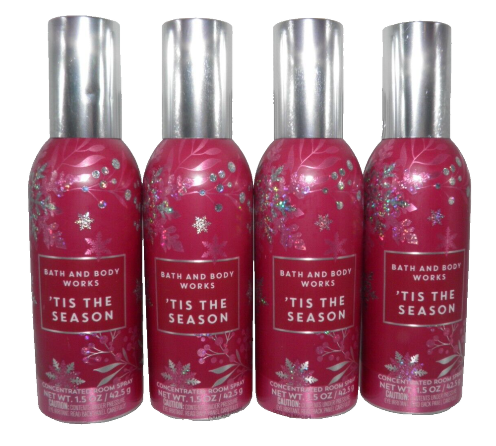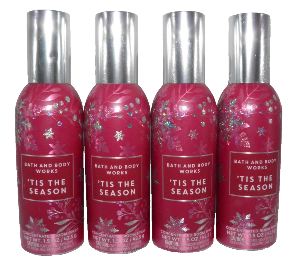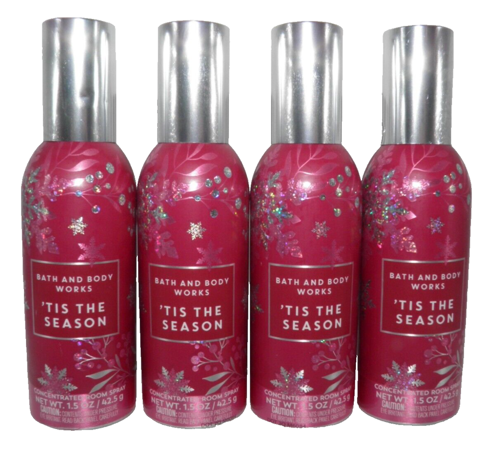 BATH & BODY WORKS TIS THE SEASON ROOM SPRAY (4 PACK) CONCENTRATED 1.5 oz Each Mailing Address - We will ONLY ship to the address on file with ebay. Before making a purchase, please ensure that your address is correct. We may otherwise cancel the sale. Handling Time - Our handling time is set to THREE BUSINESS DAYS. We ship packages Monday - Friday, with the exception of holidays. This listing is NOT sponsored by, affiliated with or representative of the mentioned brand(s), trade name(s), trademark(s) and does not claim any ownership of such. All trademarks or brands mentioned in this listing are registered trademarks of their original owners who reserve all their rights and ownership. The use or mention of any trade-name, product name, or trademark is necessary and for identification and is for reference purposes only.