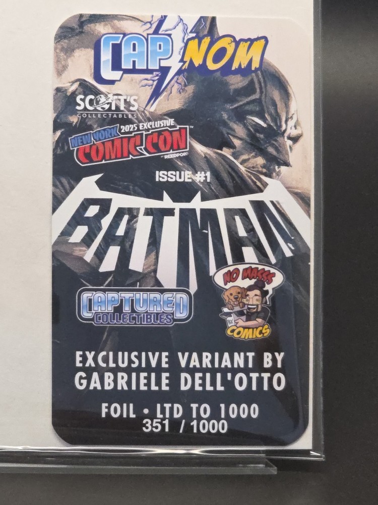 The product is a limited edition comic book titled "BATMAN #1 GABRIELLE DELL'OTTO FOIL NYCC 2025" featuring illustrations by Gabrielle Dell'Otto. The comic includes characters such as Gabrielle, Otto, and Bat-Man and is part of the Batman series. With a publication year of 2025, this collectible item is a must-have for comic book enthusiasts and fans of the iconic superhero.