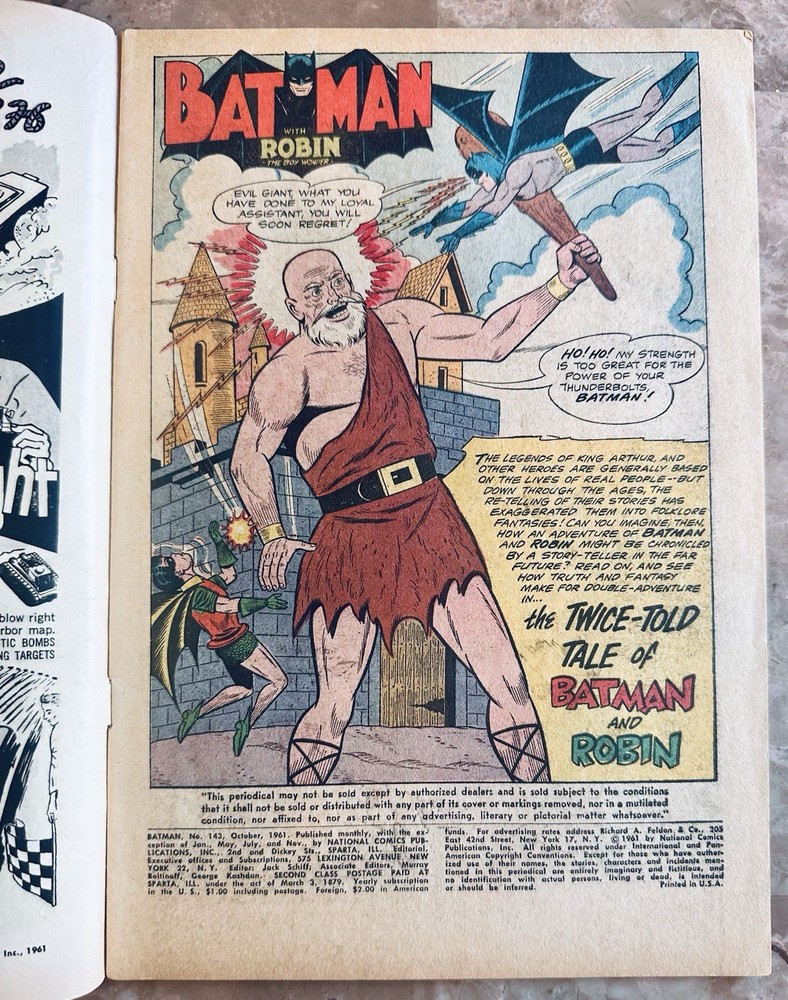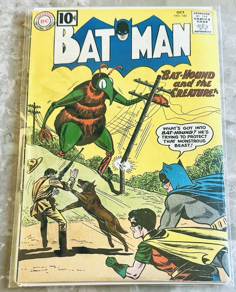 The product is a comic book from the Batman series, issue number 143 published by DC in 1961. This particular issue features artwork by Sheldon Moldoff, Bill Finger, and Charles Paris, and includes characters like Robin (Dick Grayson) and Batman (Bruce Wayne) within the DC Universe. It is from the Silver Age era. This collectible comic book holds significance as a 1st edition and falls under the genre of superheroes and comics, representing a piece of US Comics tradition. Nice clean copy. Ships from Denver, Colorado .