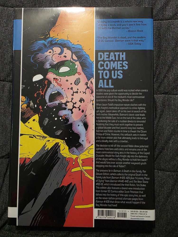 The "Batman: A Death in the Family (Deluxe Edition)" graphic novel is a collector's edition featuring the iconic superhero Batman. Written by Jim Aparo, Marv Wolfman, Jim Starlin, and Mike DeCarlo, this hardcover edition is a part of the Batman series within the DC Universe. With a focus on action and superheroes, this deluxe edition is a must-have for fans of the Bat Family and Batman universe, offering a high-quality and visually stunning reading experience.