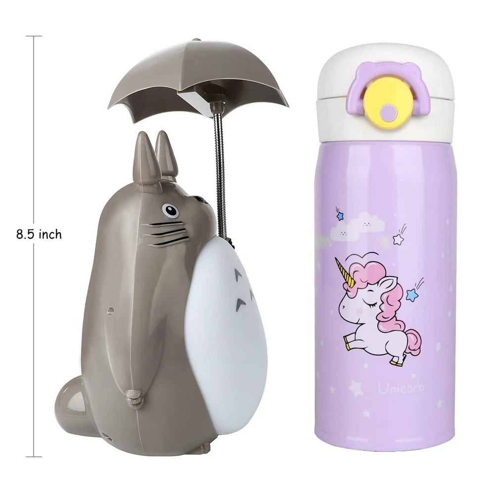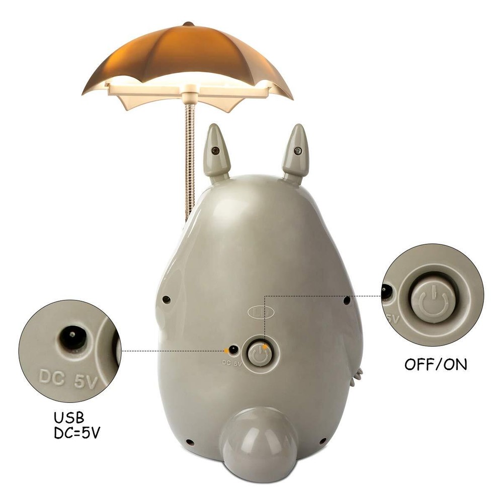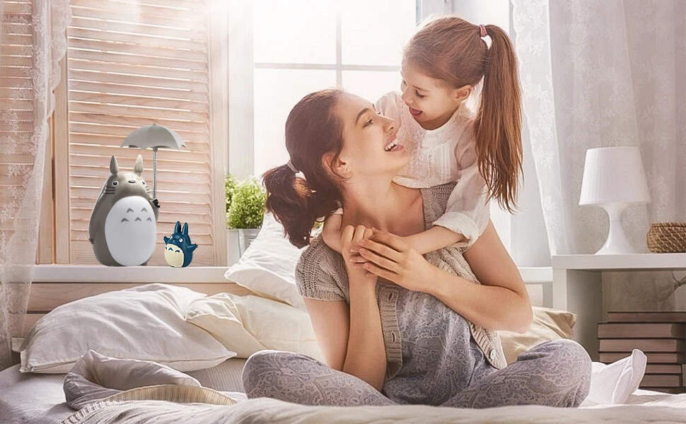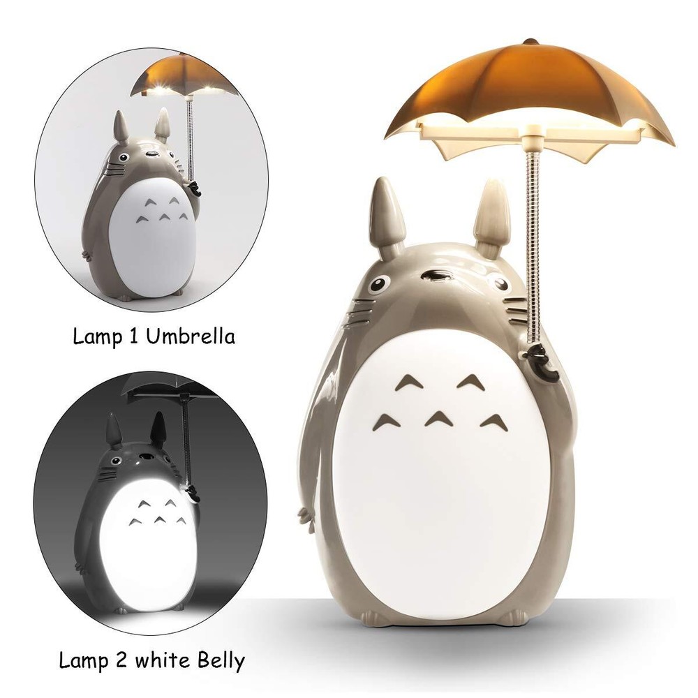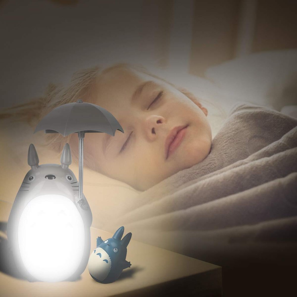 ✅ Perfect Gift for Kids and Fans of The Cartoon Character - My Neighbor Totoro is a popular Japanese animation character, loved by adults as well as children. Your children will be very happy because you not only give them the expected gift, but also understand their hobby. ✅ Easy to Control -- Mode 1: click once for warm white belly light; Mode 2: click twice for the 8 ball LEDs umbrella light. Totoro anime umbrella lamp is easy to control. ✅ Soft Light As Perfect As a Night Light -- Soft light emanating from Totoro's stomach or his umbrella are perfect as a night light. Soft light of Totoro umbrella led night light can help hypnotism and fall asleep again after getting up at night. ✅ Useful for Indoor and Outdoor -- Portable Size to Carry: appox. 9 in height x 5 in width, equivalent to the height of insulating cup. Charges conveniently with USB, Charging Time: approx. 2~3 hours, light lasting time about 8 hours. Totoro lamp is great for Kid's Character Lamp, Desk Light, Nightstand Lamp, Camping Lamp and etc. ✅ Totoro Tumbler Toy As a Bonus & Five Years Warranty -- You will get randomly a cool gift - one of the three totoro tumbler toys as a bonus. Magic totoro tumbler makes this gift more amazing.