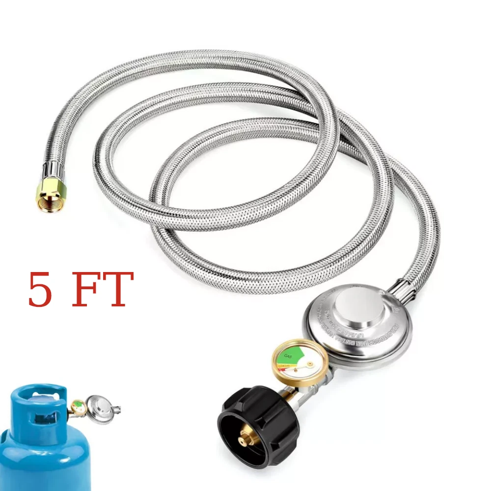BBQ 5FT with Gauge Grill Low Pressure Propane Regulator Hose for Gas Pit, Stove