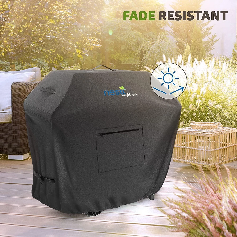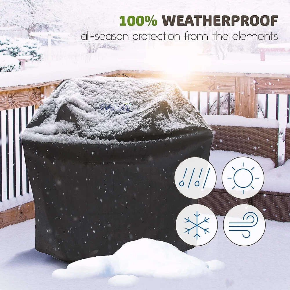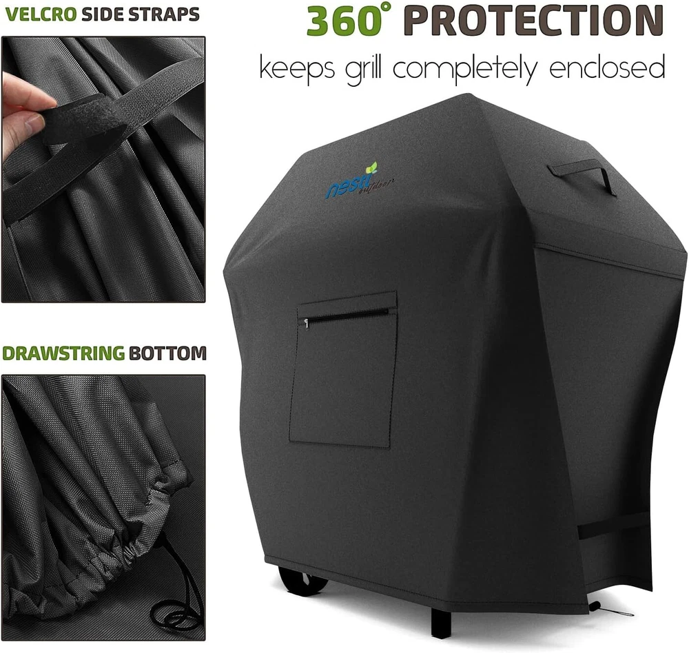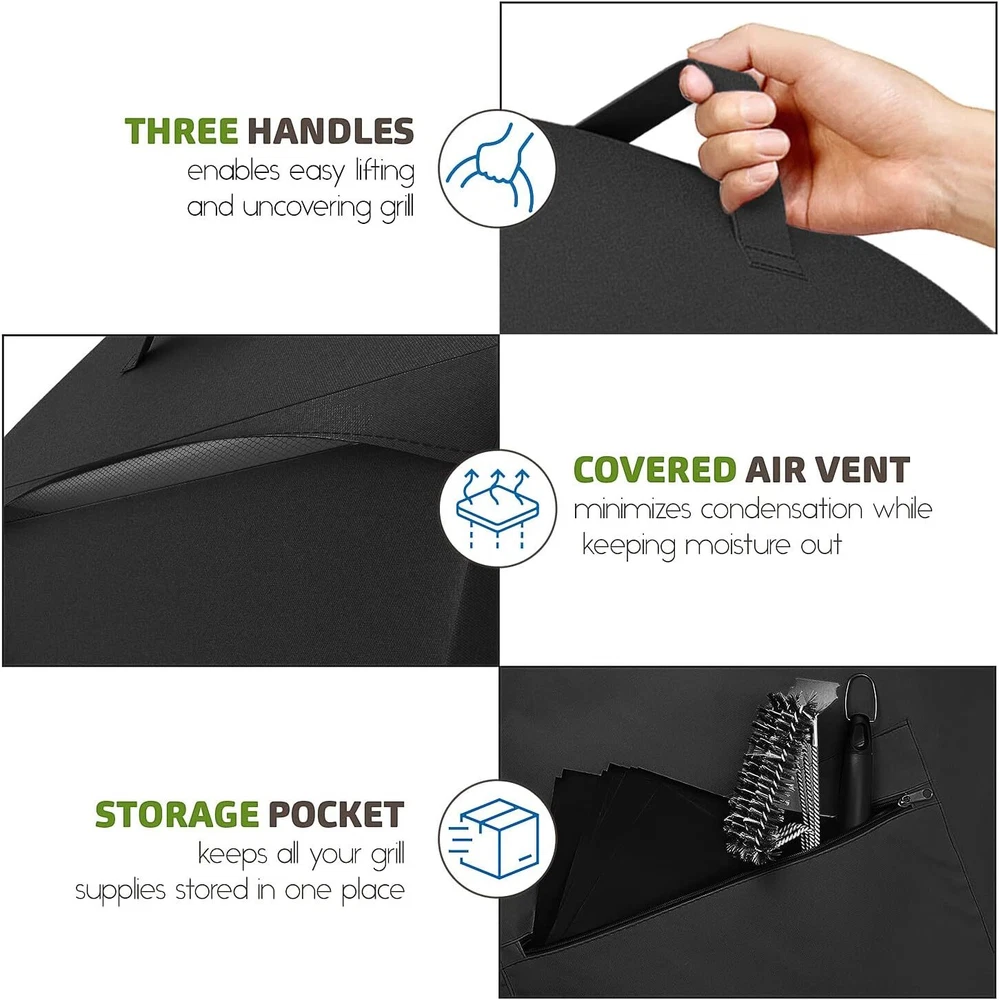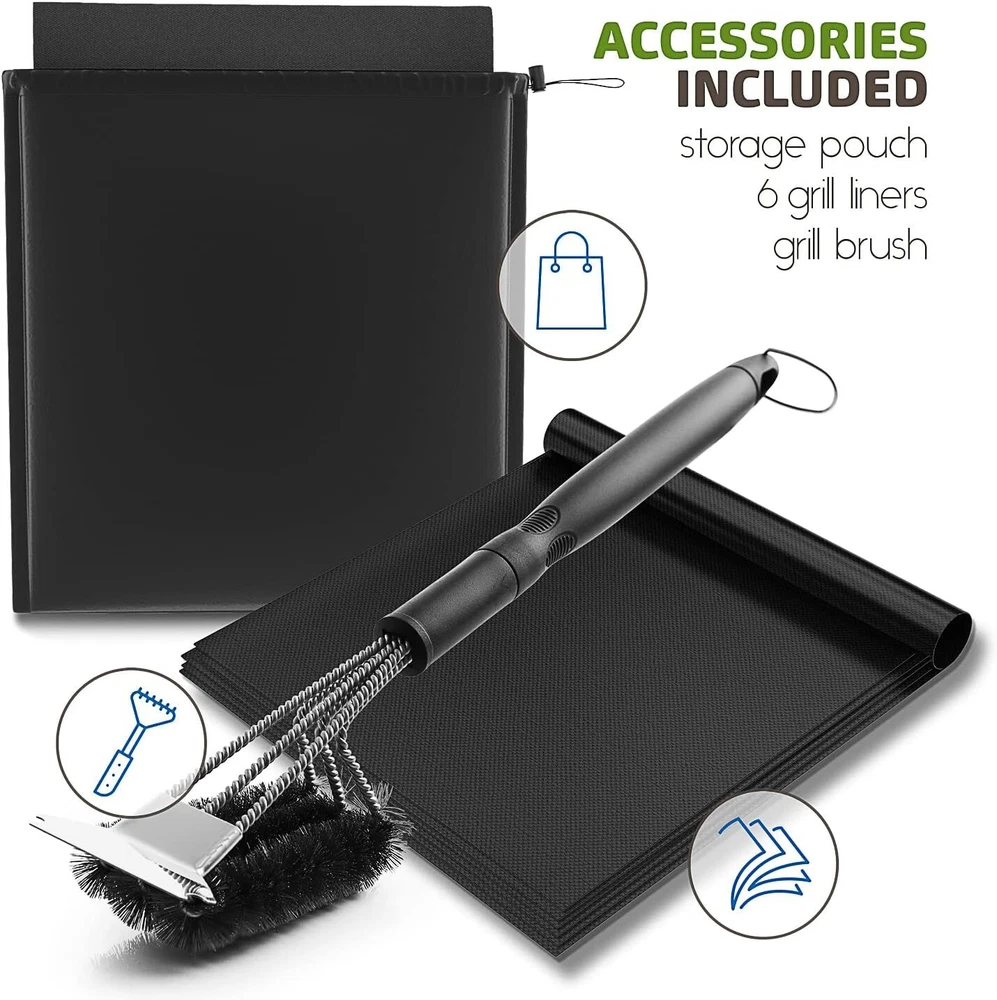 Protect your grill and accessories with this 32-inch BBQ Grill Cover featuring heavy-duty, waterproof protection and convenient storage options. Key Features: Perfect Fit : Measures 32” L x 22” W x 48” H , designed to fit most small gas grills. Premium Construction : Made of 600D Oxford polyester with PVC coating for full waterproofing and durability. Customized Fit : Drawstring and Velcro buckle provide a secure, adjustable fit that won’t blow away. Mesh Windows : Two mesh windows with flaps to prevent condensation buildup and maintain airflow. Convenient Storage : Zippered front pocket to store small accessories like the 6-pack grill liners (15.5” x 11.5”) and stainless-steel wire brush . Handles for Easy Movement : Handles on both sides and top ensure easy handling and positioning. Grilling Accessories Included : 1 x 6-Pack Grill Mats (15.5” x 11.5”) 1 x Stainless Steel Wire Brush Customer Satisfaction : Shop with confidence! We prioritize top-tier customer service. Any questions? We're always here to help. Thank you for viewing our BBQ Grill Cover 32", 600D, Waterproof, UV Resistant with Grill Mats & BBQ Brush.