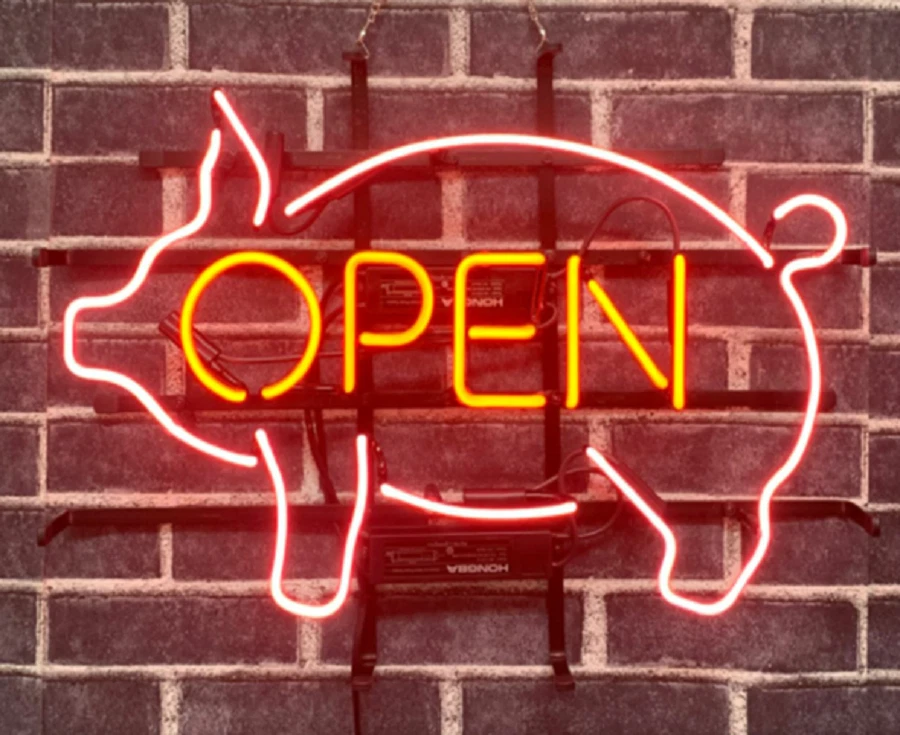 BBQ Pig Open Barbeque Pork 20"x16" Neon Lamp Light Sign Beer Bar Decor Business