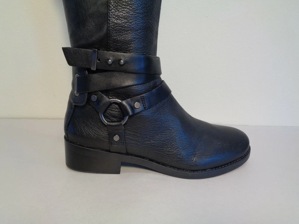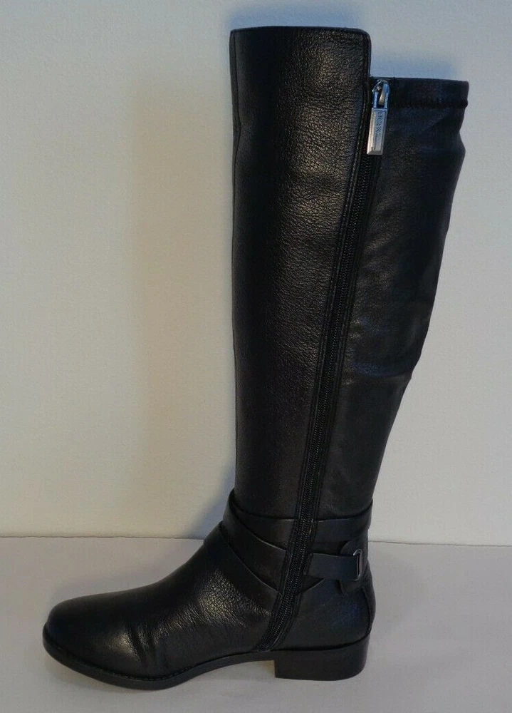 BCBG BCBGeneration Size 6 M KAI Black Leather Riding Boots New Womens Shoes Style: BG-KAI Color: Black L eather and man made upper Man made lining and outsole Inner shaft zipper L ug Sole Stretch elastic shaft for easy fit and comfort Shaft height is approximately 16.5 inches Heel height is approximately 1.25 inches Top to bottom is approximately 17.25 inches Boot opening is approximately 13.5 inches and flexible Eur 36