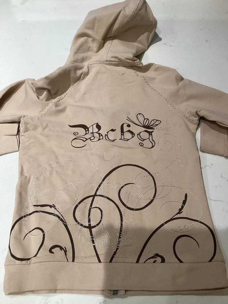 Elevate your activewear game with this stylish BCBG Max Azaria tracksuit in a trendy beige color. The set includes a jacket and pants made of comfortable cotton and spandex French Terry fabric, perfect for a workout or casual day out. The hooded sweatsuit features a 90s athleisure theme, making it a must-have addition to your wardrobe. This tracksuit is perfect for women who wear size S and prefer regular size type. Its features include a hood, making it a practical choice for outdoor activities. The BCBGMAXAZRIA brand is known for its quality and style, and this tracksuit is no exception.