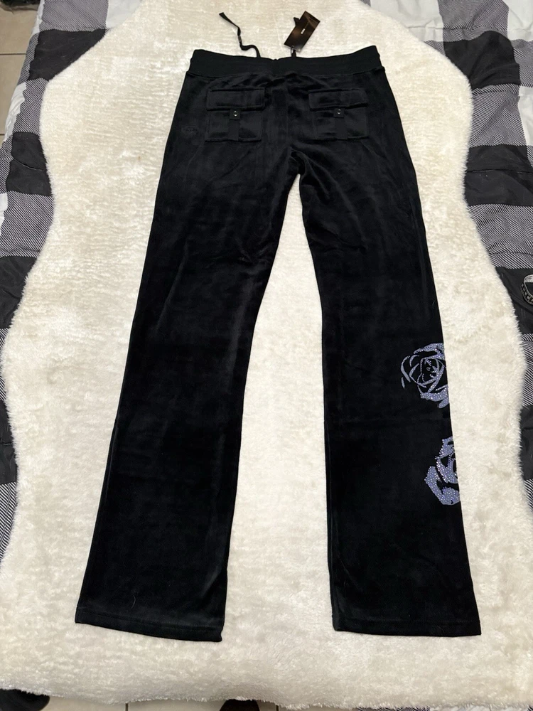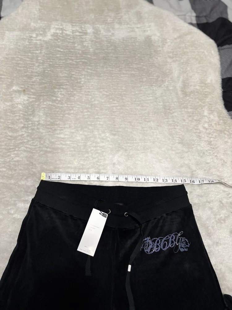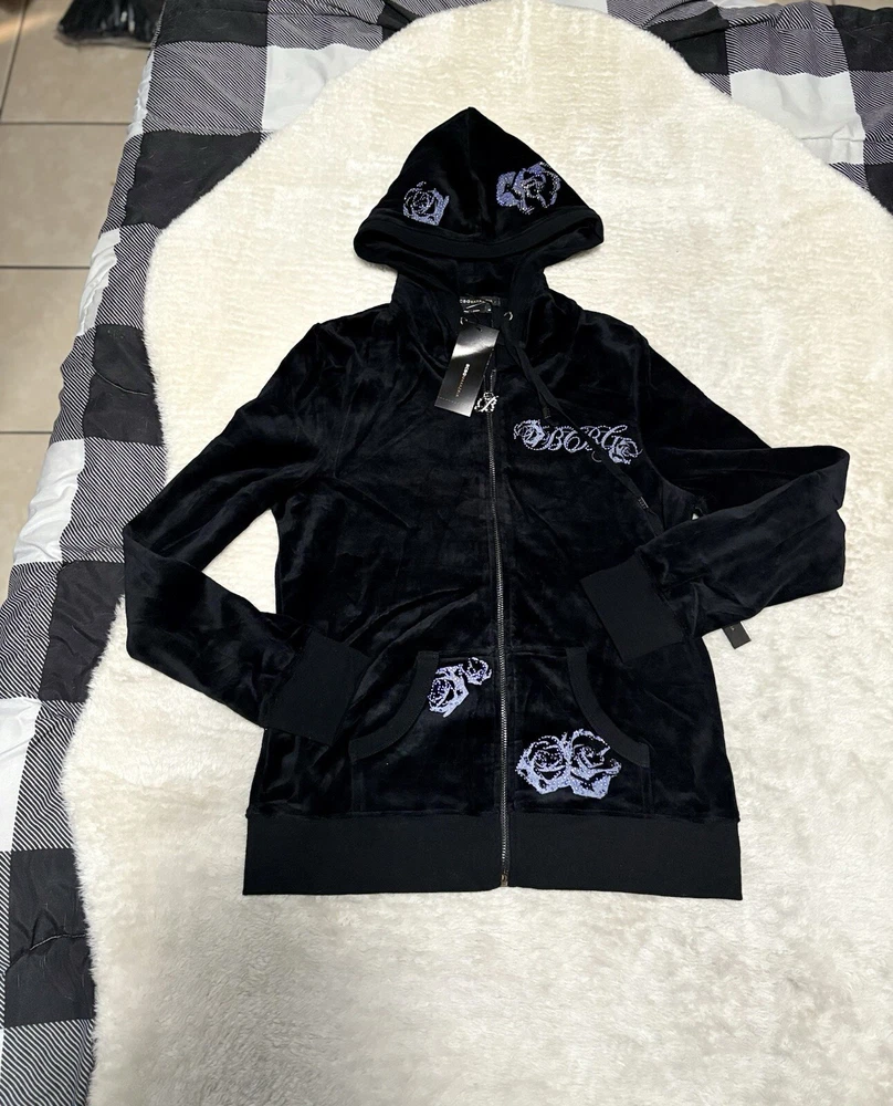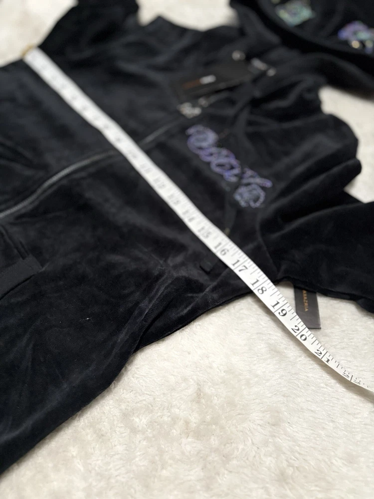 BCBG Max Azria Black Purple Embellish Velour Set Sweat Pants Hoodie Medium Y2K