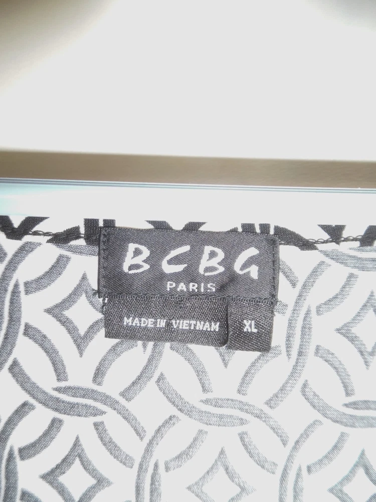 BCBG Paris womens size XL black/beige polyester stretch top Armpit-armpit: 23" Length: 26" AT Combined Shipment: USA : Highest item shipping cost + $3.00. for each subsequent item.Or, you can purchase as many items as you choose and pay the flat rate of $18.75 for your Priority Mail Large Flat Rate Box which covers your entire order. Please read the disclaimer below. INTERNATIONAL SHIPMENTS: Highest item shipping cost + $5. for each subsequent item. Please read the disclaimer below. DISCLAIMER on Shipping Costs: Our intention is to keep our shipping costs as low as possible. However, depending on the item purchased (weight) and the destination, shipping rates can vary; especially 30 Day?s No Questions Asked Returns Policy: Your satisfaction is very important to us. We have a 30 days NO QUESTIONS ASKED returns policy. The item must be returned in the condition in which it was purchased. If there are labels/tags they should not be removed. If they are, the item will be sent back to you. ANY SHIPPING COSTS WILL NOT BE REFUNDED. BOTH WAYS, receiving and any returns. Please contact us for the return shipping address and authorization. ALL COMMUNICATIONS MUST BE IN WRITING & TAKE PLACE THROUGH THE EBAY SITE ONLY. No private direct email correspondence. A customer care rep. will respond to you within 24 hrs (Mon-Fri). Once we have received the merchandise and inspected it, please allow 72 hours for a refund to be issued. NO See my other listings for more great items! We accept PAYPAL. Also we have a virtual terminal with PayPal through which we can accept Visa, MasterCard, Amex, and Discover. If you do not have a PayPal account, it takes virtually minutes to open International shipments: PLEASE DO NOT PAY until we determine your shipping costs. Most of our items also have an International Flat-Rate. Although, if due to the destination or the weight we are unable to honor the rate mentioned in the item?s listing, we will cancel your order and leave you positive feedback. Usually we use the US Postal Service. The best international rate for an international shipment is First Class (up to 4 lbs.)If your items exceed 4 lbs. we may pack them into two separate packages (and notify you of this).You still are eligible to take advantage of the combined shipping rates, even if we have packed them into two separate packages. The fees for packaging, shipping, insurance, Customs Duty Charges on international shipments are all the responsibility of the Buyer and are not included in the purchase price. If the item(s) are gifts, we could indicate ?GIFT? on the customs form so you would avoid paying more on duty. Add a map to your own listings. FREE Trial!