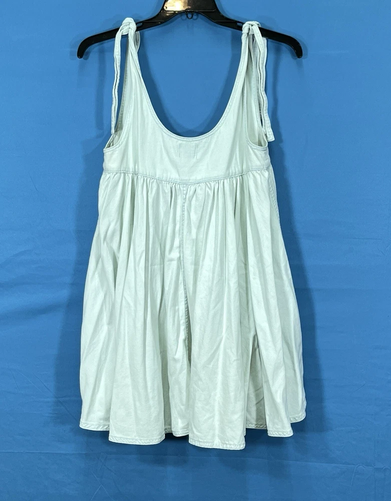 BDG Urban Outfitters LIGHT BLUE WASH Twill TIE-STRAP Babydoll MINI SWING DRESS S