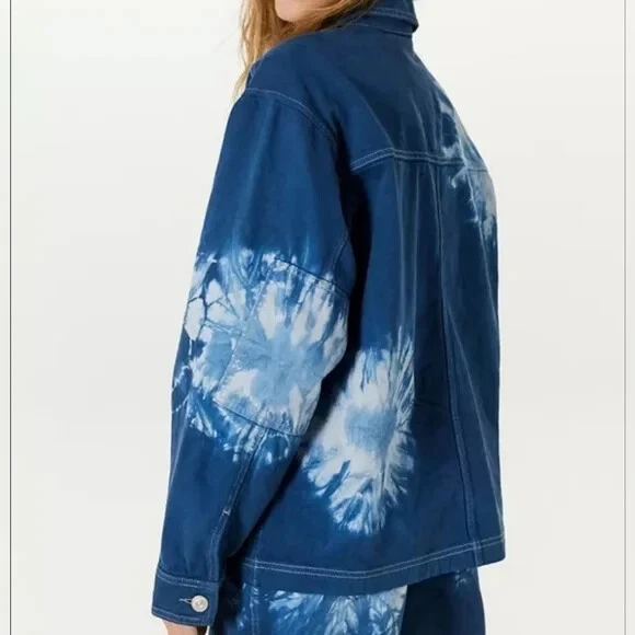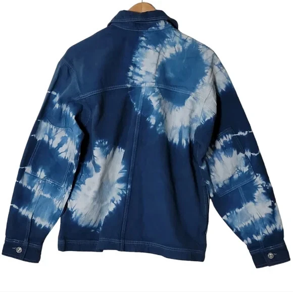 URBAN OUTFITTERS - BDG: Oversized Blue Tie-Dye Denim Jacket $79.00 Brand New With Tags - Size XSmall Oversized Fits up to a medium Blue & White Tie-Dye Pattern - Boxy Fit Urban Outfitters shirt jacket featuring: Oversized styling - Button Front - Pointed Collar Two button Flap patch chest pockets - Two hidden hip pockets - Bleach tie-dye design - Dropped sleeves Chest measuring from underarm to underarm 23” Length from shoulder 25” Machine washable (with like colours)