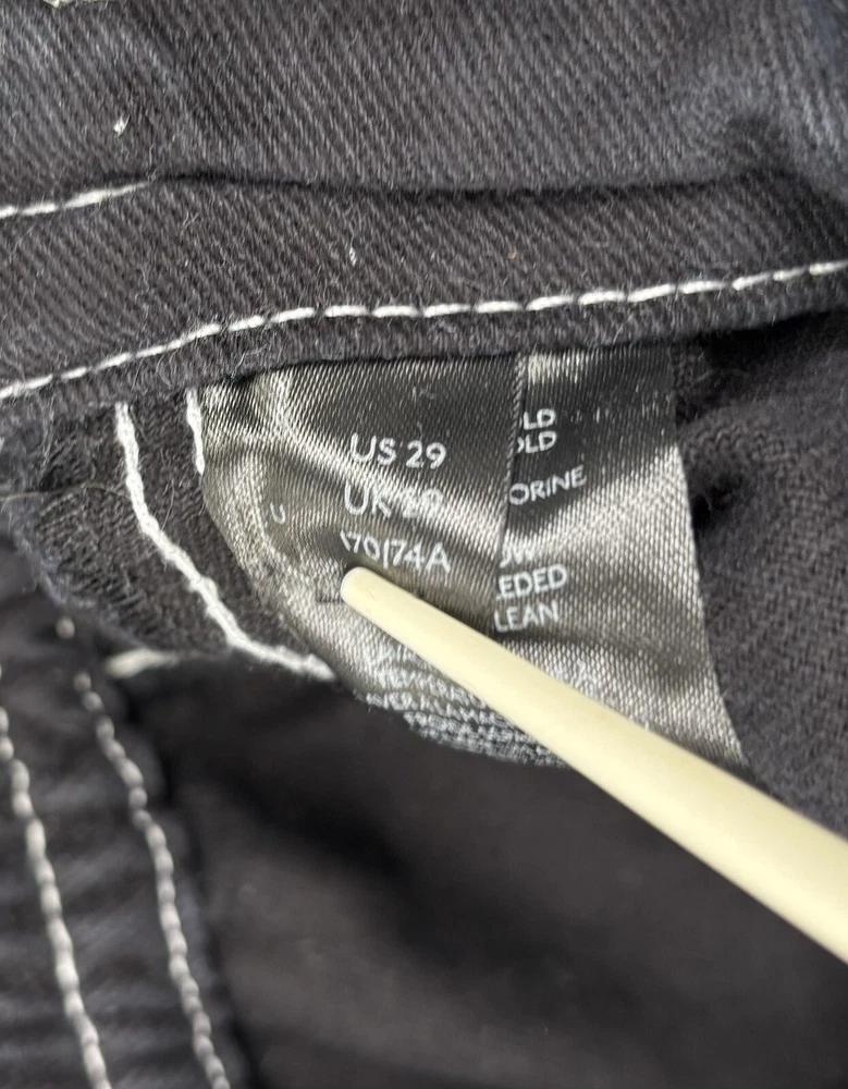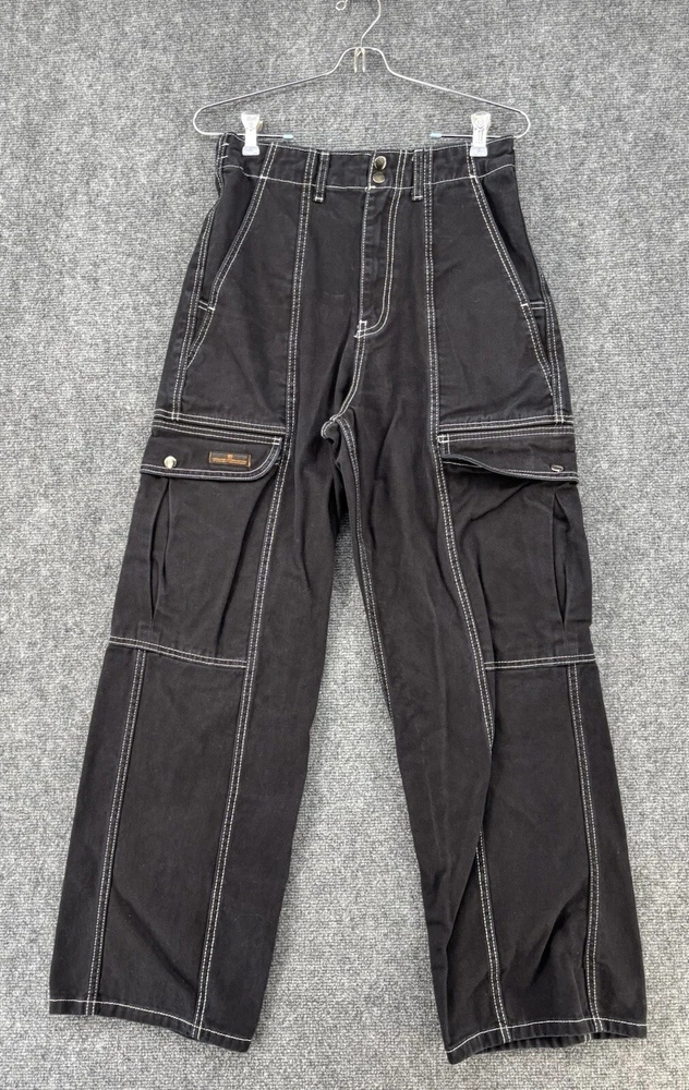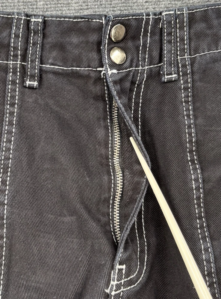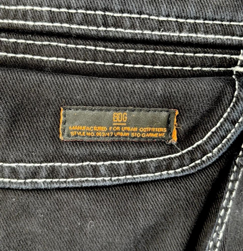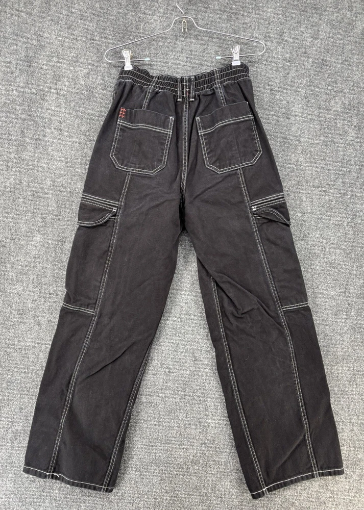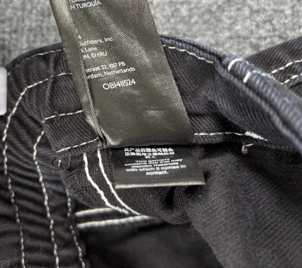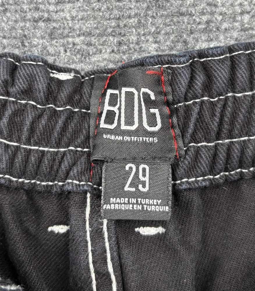 Theme: Grunge, 90s, Retro, Festival, Fun, Gothic, Hip Hop, Logo, School Rise: High (Greater than 10.5 in) Inseam: 28.5 in Brand: BDG Urban Outfitters Size: 29 Accents: Button, Zipper, Logo Features: Pockets, Comfort, Breathable, Easy Care, Elastic Waist Pocket Type: Cargo Pocket Waist Size: 28 in Garment Care: Machine Washable Type: Jeans Color: Black Season: Winter, Summer, Spring, Fall Material: Cotton Blend Style: Wide-Leg Closure: Zip, Button Fit: Regular Fabric Wash: Dark Pattern: Solid Department: Women Fabric Type: Denim Size Type: Regular Country/Region of Manufacture: Türkiye