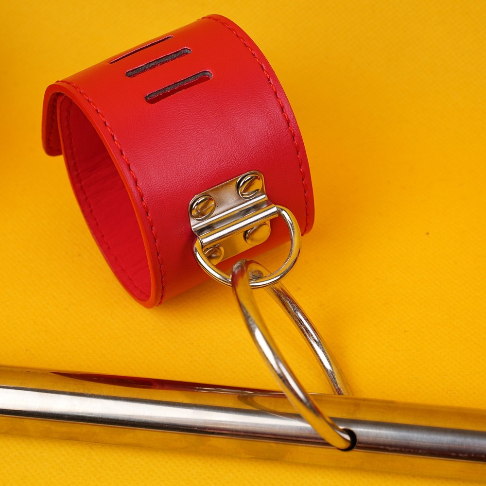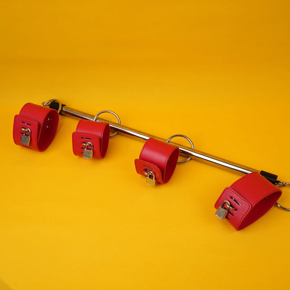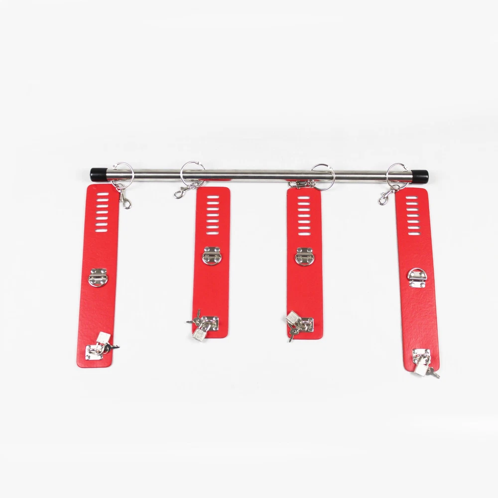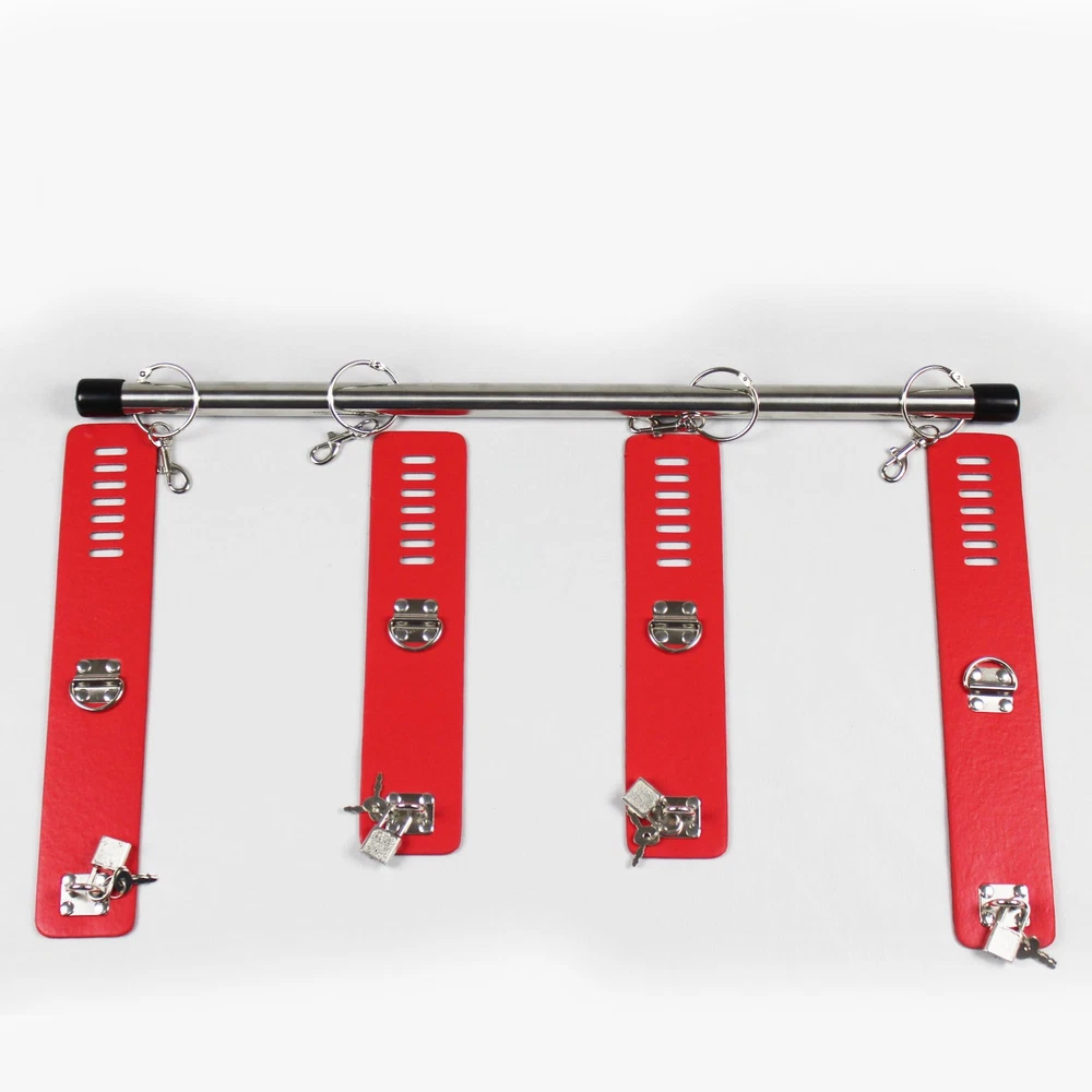 Features: Condition: 100% Brand new and high quality Material: PU leather + Metal Color: Black/Red bar Length: 55cm/21.65inches Handcuff: 25cm * 5.5cm Ankle cuff: 30cm * 5.5cm Package Included: 1pcs Spreader Bar with handcuff& anklecuff Note: The real color of the item may be slightly different from the pictures shown on website caused by many factors such as brightness of your monitor and light brightness.