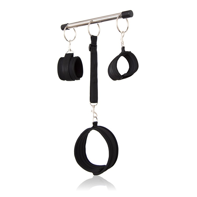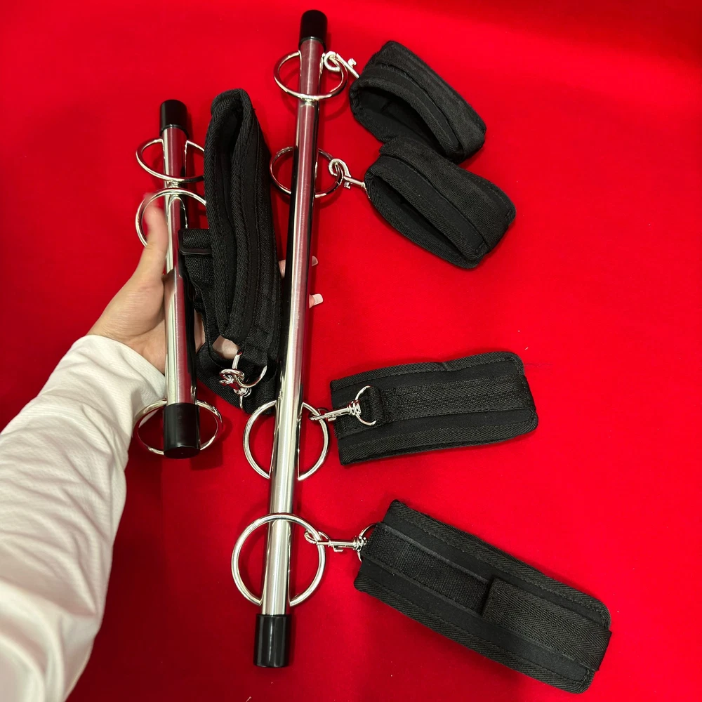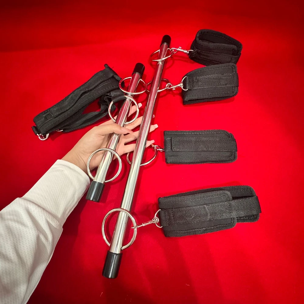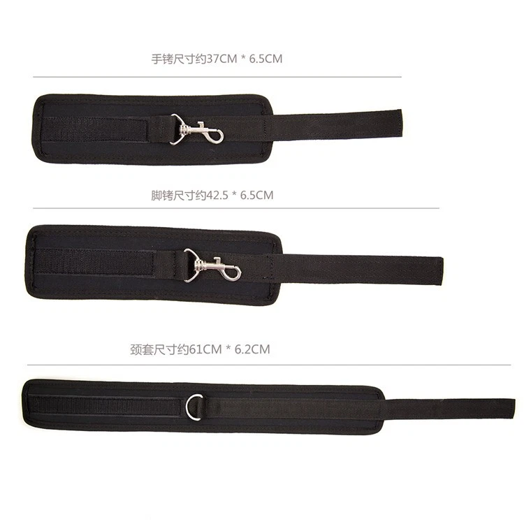 100% Brand New and high quality Theme: Fantasy Game Dubble Open Leg Bar Color: Black Material: Nylon + Metal Size: Long bar :about 49cm,Short bar:about 31cm Handcuff: 37cm*6.5cm Ankle Cuff: 42.5cm*6.5cm Neck Collar: 61cm*6.2cm Package Contents: 2 x Steel Bar, 5 x Strap Discreet packaging