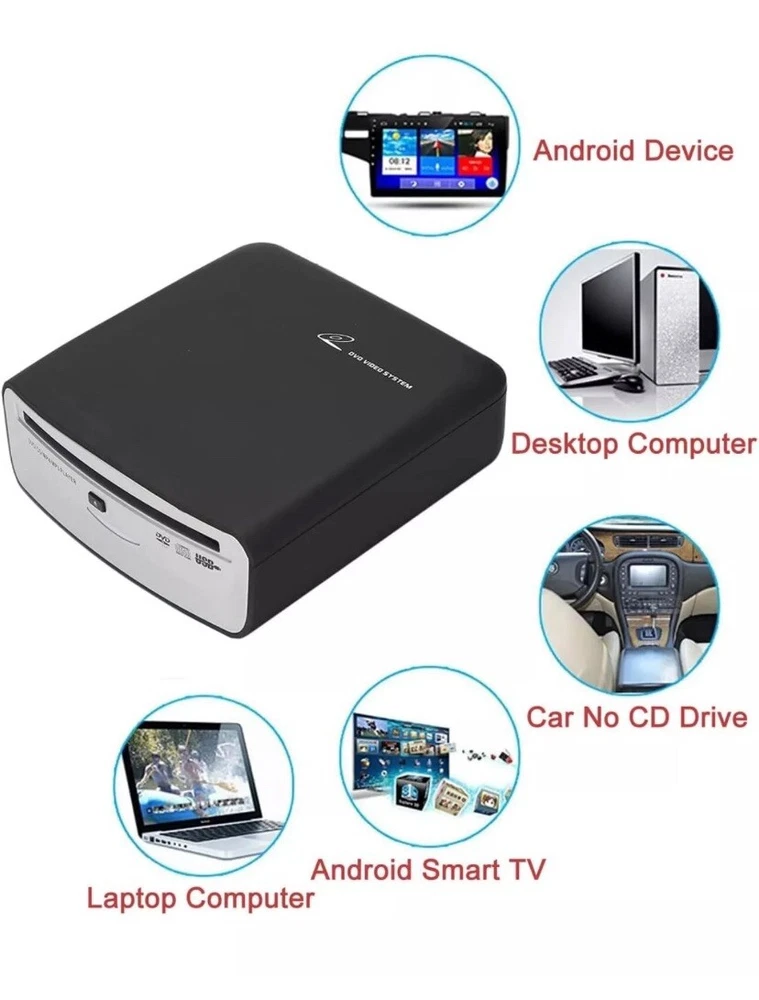 This item is new . The box was opened for inspection to verify condition and accurate listings This portable external car CD Player,It is suitable for car Android multimedia large screen navigation and USB interface. Just insert the CD player into the USB interface of the car Android navigation host, and the CD player will automatically identify and display the data on your screen. You will be able to listen to music and audio novels in the car as you like, bringing you distinctive vision and hearing, creating a pleasant and comfortable atmosphere on the way to drive, making people relaxed and happy, instantly reducing the feeling of fatigue. Not only is compatible with Android Car Navigation, Also compatible with Android Smart TVs, Windows and Mac OS desktop, laptop, PCS. 100% brand new high-quality car CD player has table working performance and long service life. Product Specification: Voltage / Current: DC5V Min1A Product size: 6.3 in*6.1 in*1.9 in Weight:About 700g Operating temperature:-10 ℃ ~ + 70 ℃ Android Version: For Android Version 4.4 or more Player Disc Format: DVD-ROM, DVD±R, DVD±RW, CD-ROM, CD-R, and CD-RW Disc adaptability: 12CM Disc External interface : USB 2.0 Disc access mode: suction-type Placement angle: Place horizontally Package Include:1x CD Player for car The method of connecting the CD player to the car Android navigation: The first method: car navigation has a dedicated CD player software. Insert the disc to be played, wait for the words "Preparing USB storage" to appear in the upper left corner of the screen, click the CD Player" icon, and then you can enjoy CD music. The second method: without installing the APP, the USB can be used directly by plugging in, insert the CD disc,Select USB data entry mode on Car mode,click the music icon on the large screen machine interface.Or connect the CD player to the USB interface of most cars, insert the CD music disc, Select USB data entry mode on Car mode,and wait for a while to automatically read and play. Notes: 1.It does not support playback of Blu-ray and vinyl records. If you want to connect to other devices for playback, it only supports navigation above Android 4.4. 2.For Android Navigation on some models you have to go into the menu to get and select the USB port to recognize the CD player and play music. 【Easy to Use】Brand new portable car CD player,plug and play. Don't need to install software to set for driver. It features strong error-correcting ability, anti-shock and noise reduction technology, low power consumption, and powered by the USB port, no external adapter needed. No drive needed. Plug and play 【Specially Designed for Car】It is suitable for car Android multimedia large screen navigation and USB interface. Just insert the CD player into the USB interface of the car Android navigation host, Select USB data entry mode on Car mode,and the CD player will automatically identify and display the data on your screen. Enjoy your CD music and audio books.(NOTE:Android version 4.4 and above) 【Widely Compatible】Compatible with Android Car Navigation, Android Smart TVs, Windows and Mac OS desktop, laptop, PCS. Supports DVD-ROM, DVD±R, DVD±RW, CD-ROM, CD-R, and CD-RW. (Cars and televisions need to support USB flash drive functionality and must have a player that can play all file formats on the DISC.) 【Electronic Shock Resistance】The CAR CD Palyer uses an advanced movement.The fuselage is placed horizontally/vertically/haphazardly and the car is jolted without affecting disk reading.