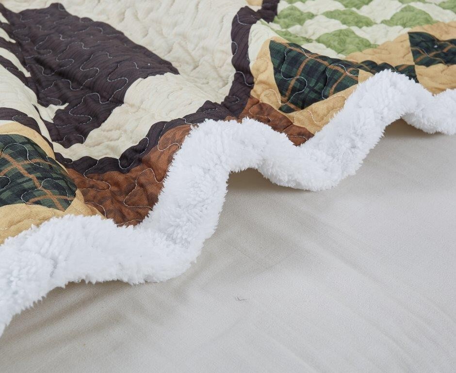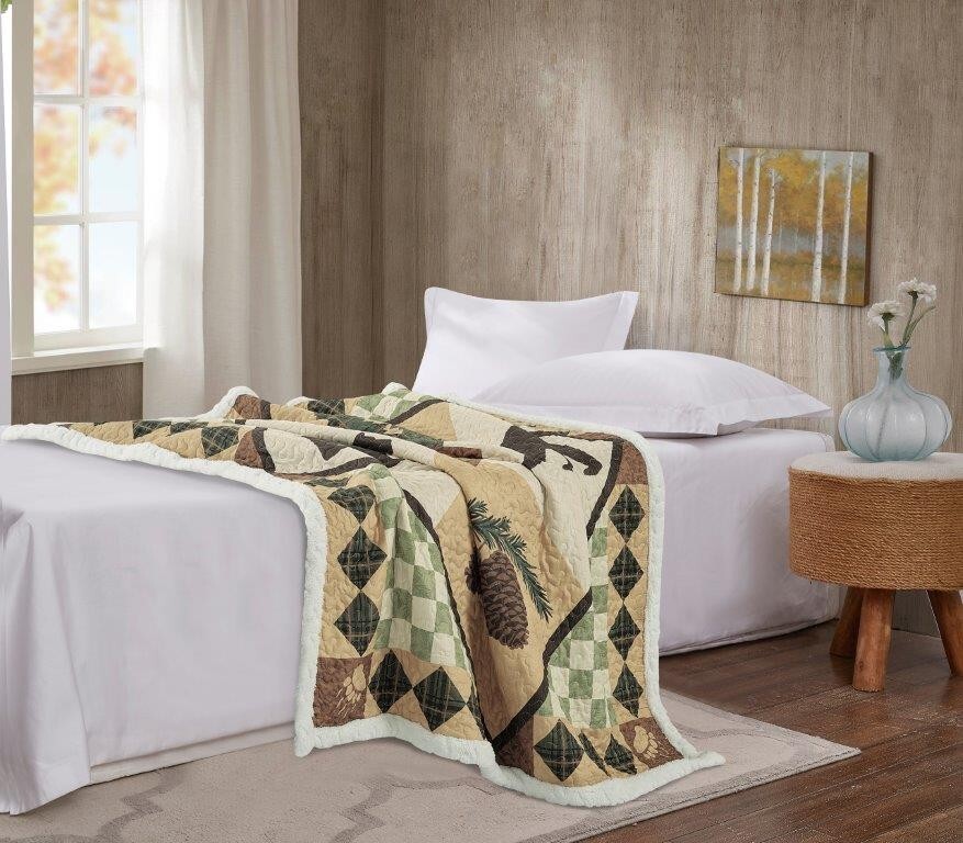 Enchanting designer originals make up this lovely collection of throws. These throws have beautifully detailed quilting on the front face with a minky-soft Sherpa backing. Wrap yourself in the cozy comfort of the Bear Lodge Quilted Sherpa Throw Blanket, a versatile and stylish addition to any room. Sized at 50" x 60" and made from the silkiest 100% polyester microfiber, Measuring approximately 50 x 60 inches, this soft polyester blanket features a vibrant multicolor design that brings a touch of nature and art to your space. Its quilted style not only adds a layer of texture but also ensures durability and warmth, making it suitable for all seasons. Carefully crafted for ease of use, this machine-washable throw blanket is designed for practicality and elegance. It is ideal for anyone looking to add a splash of luxury and family-friendly charm to their home. Simply follow the easy care instructions to keep this blanket looking its best without the hassle of dry cleaning or tumble drying.
