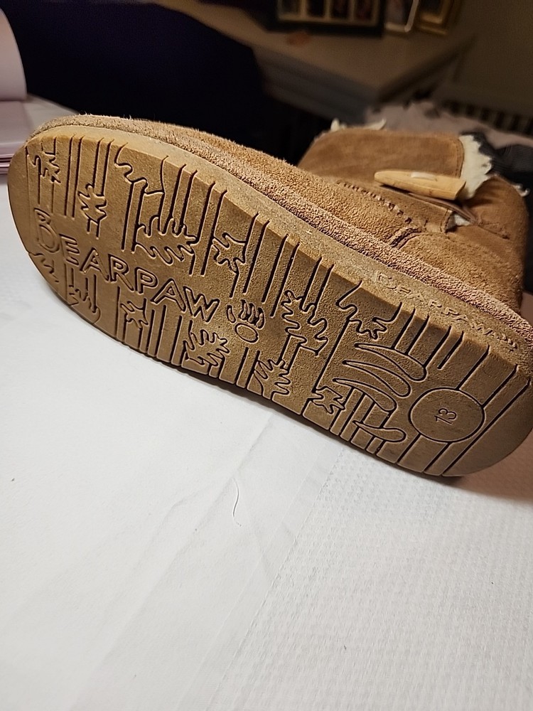 The BEARPAW Girl's Boots in youth size 13 are stylish and practical footwear for young girls. With a classic boot design and a comfortable fit, these boots are perfect for everyday wear or special occasions. The character of the boots adds a touch of personality and charm, making them a popular choice for young fashionistas. Made by a reputable brand, these boots combine durability and style to keep your little one's feet warm and looking great.