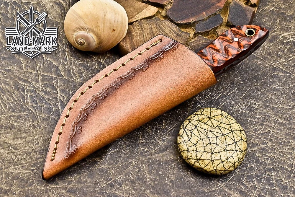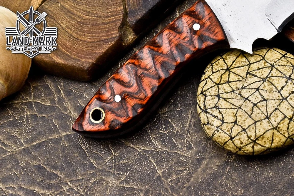 Custom Hand Made D2 STEEL HUNTING KNIFE WITH PAKKA WOOD HANDLE We offer a shipping discount for More then one purchased . And discount will be apply on combine invoice, Discount will not apply on separate payment. ITEM DETAILS OVER ALL LENGTH 8.0 inches long (Approx) HANDLE LENGTH 4.0 inches long (Approx) BLADE LENGTH 4.0 inches long (Approx) BLADE HARDNESS 58-60 HRC Which Holds The Sharp Edge For Long Time. HANDLE PAKKA WOOD COVER LEATHER SHEATH This Awesome custom made KNIFE has a nice hand forged with the combination of 4340 & 1080 steel. HOW OUR DAMASCUS IS MADE: All our Damascus is real and not just an acid etch. Damascus is a mixture of 1080HC and 4340 nickel carbon. You heat them up together and then fold the bar over and over to get the desired layers, ours are 396 layers. Then you burn the blade in acid, and it turns the nickel satin color and the high carbon turns blackish gray. This is how the layers are exposed to show the layers of the new steel created coined "Damascus". All Damascus is acid etched to show the layers. If you high polish the metal it will be shinny satin like all steels. Only after you burn the sides of the blade with acid do you see the layers of the two steels. Makes sense? After we make our knives we high polish the handles and put an edge on the blade. The high polishing buffs off the acid burned layer of the handle, and the blade edge is sharpened and the acid burned edge becomes satin. You can re-burn the tang of the blade near the handles and the edge of the blade and it will show the layers once more. All our knives are hand made, durable and unique ***** YOU WILL RECEIVED THE SAME KNIFE Qality Standards Our Damascus blades are made from high quality non-stainless steels which rival or exceed any Damascus blade made from the 10 series with 4340. Our Damascus combination has taken years to perfect and has been tested under a variety of application which will offer professional performance in categories of toughness, strength (lateral stress) and edge honing and holding ability. In a 5 spot Rockwell test our blades will average near or close to 58 which offers a perfect balances between its toughness and strength.Our blades due to carbon content need to be regularly treated with wax and/or 3 in 1 oil to maintain its superior quality. Questions if you have any question feel free to send us message we aim to answer all questions within 24 hours Feedback If you are not satisfied with our service please contact us before leaving any negative or natural feedback. We will resolve all issues as quickly as possible. Disclaimer We are not responsible for any injuries associated with the use of our tools. Our products are intended for legal use only by responsible buyers. Therefore, we will not sell our products to anyone under the age of 18. Before bidding please check your country laws as some countries Custom don't allow this. If your purchase is held by Custom Authorities in your country/State we will not be responsible for that and no refund will be issued Shipping We offer a 20% shipping discount for More then one purchased . And discount will be apply on combine invoice, Discount will not apply on separate payment We ship within 24 hours after receiving complete payment but this can be delayed due to week ends or Governments and Religious Festivals . . This is beyond our control and we apologize for this inconvenience. Precautions Our Tools are very sharp so open and use them very carefully We are not responsible for any injuries associated with the use of our tools Tips to Care knife 1. NEVER STORE YOUR KNIFE FOR LONG TIME IN LEATHER SHEATH. 2. LEATHER CAN ABSORB WATER, WHICH WILL RUST THE KNIFE. 3. ALWAYS CLEAN THE BLADE AFTER USING WITH OIL OR WAX