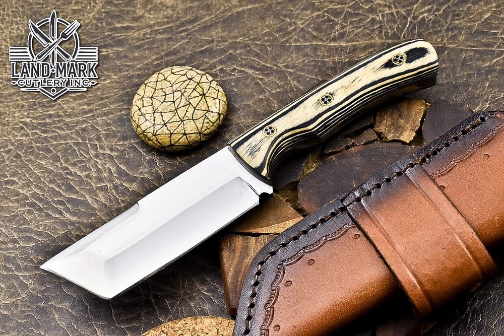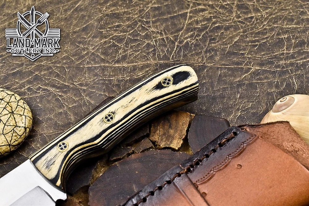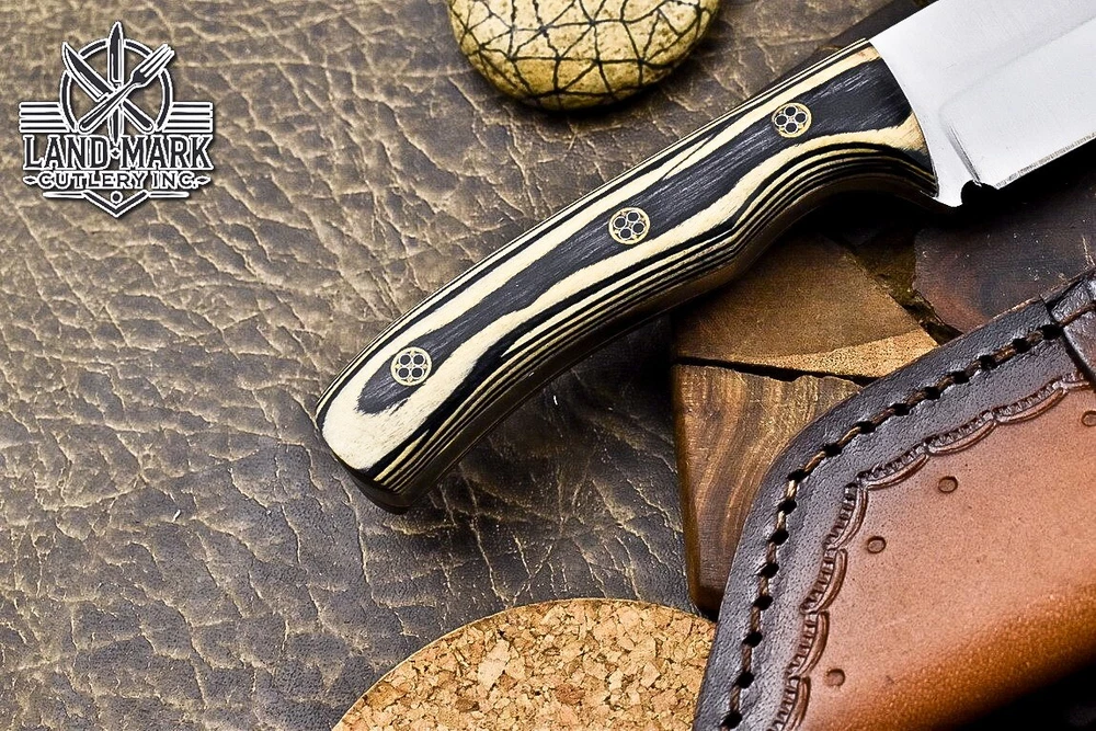 Custom Hand Made D2 STEEL HUNTING KNIFE WITH BLACK HANDLE We offer a shipping discount for More then one purchased . And discount will be apply on combine invoice, Discount will not apply on separate payment. ITEM DETAILS OVER ALL LENGTH 8.0 inches long (Approx) HANDLE LENGTH 4.0 inches long (Approx) BLADE LENGTH 4.0 inches long (Approx) BLADE HARDNESS 58-60 HRC Which Holds The Sharp Edge For Long Time. HANDLE PAKKA WOOD COVER LEATHER SHEATH This Awesome custom made KNIFE has a nice hand forged with the combination of 4340 & 1080 steel. HOW OUR DAMASCUS IS MADE: All our Damascus is real and not just an acid etch. Damascus is a mixture of 1080HC and 4340 nickel carbon. You heat them up together and then fold the bar over and over to get the desired layers, ours are 396 layers. Then you burn the blade in acid, and it turns the nickel satin color and the high carbon turns blackish gray. This is how the layers are exposed to show the layers of the new steel created coined "Damascus". All Damascus is acid etched to show the layers. If you high polish the metal it will be shinny satin like all steels. Only after you burn the sides of the blade with acid do you see the layers of the two steels. Makes sense? After we make our knives we high polish the handles and put an edge on the blade. The high polishing buffs off the acid burned layer of the handle, and the blade edge is sharpened and the acid burned edge becomes satin. You can re-burn the tang of the blade near the handles and the edge of the blade and it will show the layers once more. All our knives are hand made, durable and unique ***** YOU WILL RECEIVED THE SAME KNIFE Qality Standards Our Damascus blades are made from high quality non-stainless steels which rival or exceed any Damascus blade made from the 10 series with 4340. Our Damascus combination has taken years to perfect and has been tested under a variety of application which will offer professional performance in categories of toughness, strength (lateral stress) and edge honing and holding ability. In a 5 spot Rockwell test our blades will average near or close to 58 which offers a perfect balances between its toughness and strength.Our blades due to carbon content need to be regularly treated with wax and/or 3 in 1 oil to maintain its superior quality. Questions if you have any question feel free to send us message we aim to answer all questions within 24 hours Feedback If you are not satisfied with our service please contact us before leaving any negative or natural feedback. We will resolve all issues as quickly as possible. Disclaimer We are not responsible for any injuries associated with the use of our tools. Our products are intended for legal use only by responsible buyers. Therefore, we will not sell our products to anyone under the age of 18. Before bidding please check your country laws as some countries Custom don't allow this. If your purchase is held by Custom Authorities in your country/State we will not be responsible for that and no refund will be issued Shipping We offer a 20% shipping discount for More then one purchased . And discount will be apply on combine invoice, Discount will not apply on separate payment We ship within 24 hours after receiving complete payment but this can be delayed due to week ends or Governments and Religious Festivals . . This is beyond our control and we apologize for this inconvenience. Precautions Our Tools are very sharp so open and use them very carefully We are not responsible for any injuries associated with the use of our tools Tips to Care knife 1. NEVER STORE YOUR KNIFE FOR LONG TIME IN LEATHER SHEATH. 2. LEATHER CAN ABSORB WATER, WHICH WILL RUST THE KNIFE. 3. ALWAYS CLEAN THE BLADE AFTER USING WITH OIL OR WAX